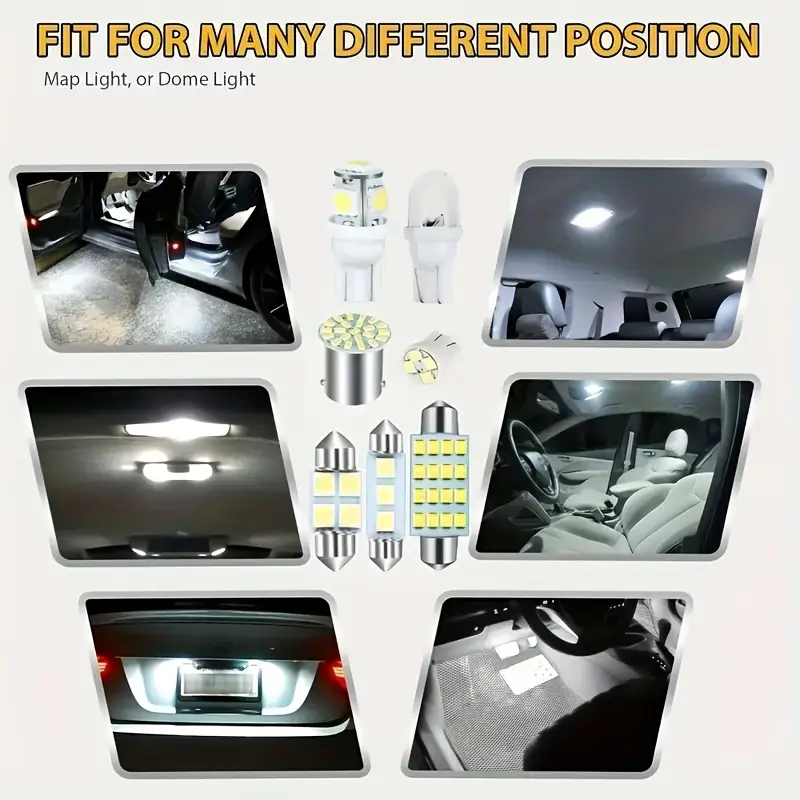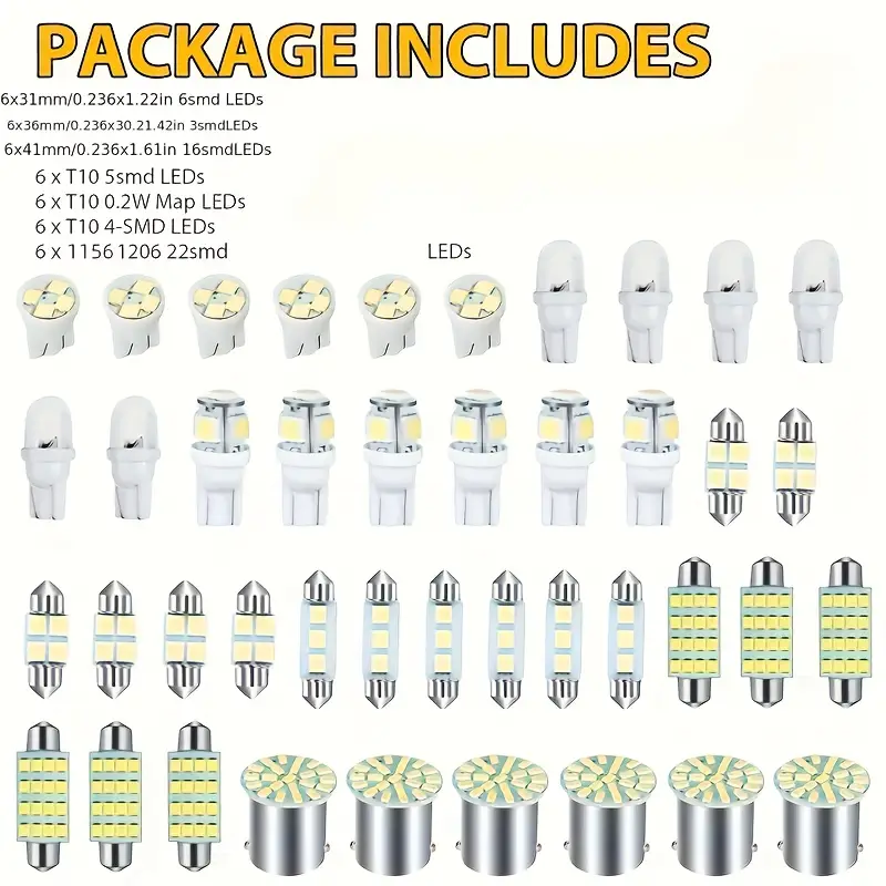 Набор из 42 белых светодиодных ламп для автомобиля: освещение для карты, купола, номерного знака, 6000K