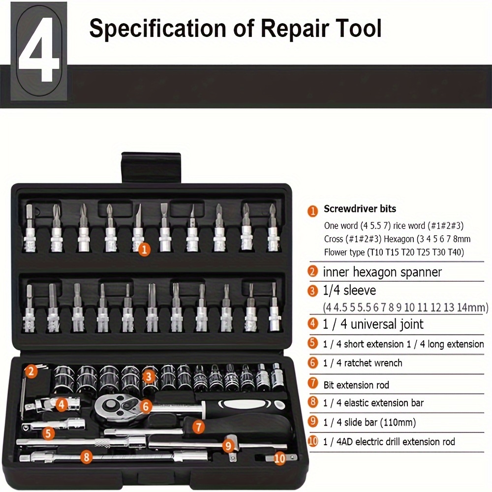 Набор инструментов для ремонта мотоциклов и автомобилей, 46 шт., трещотка, ключ, отвертка, головки