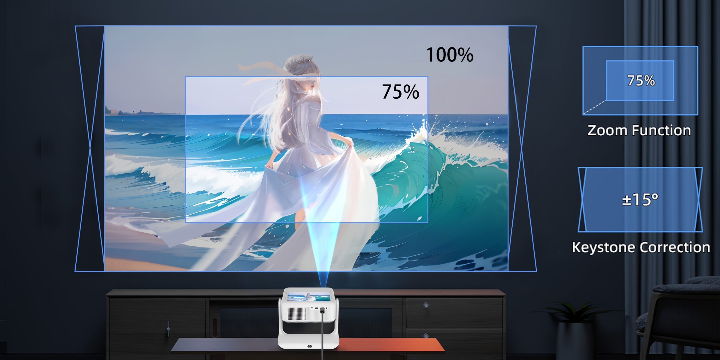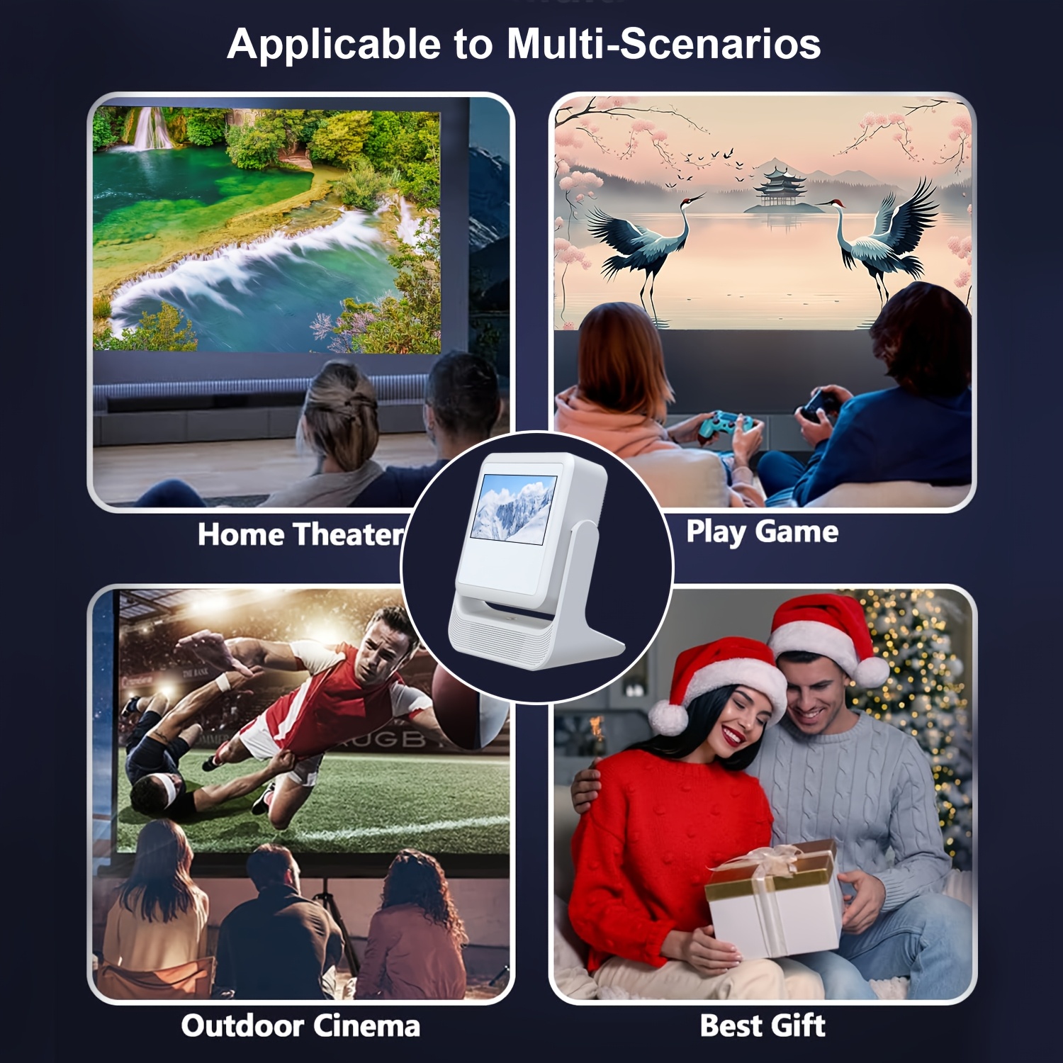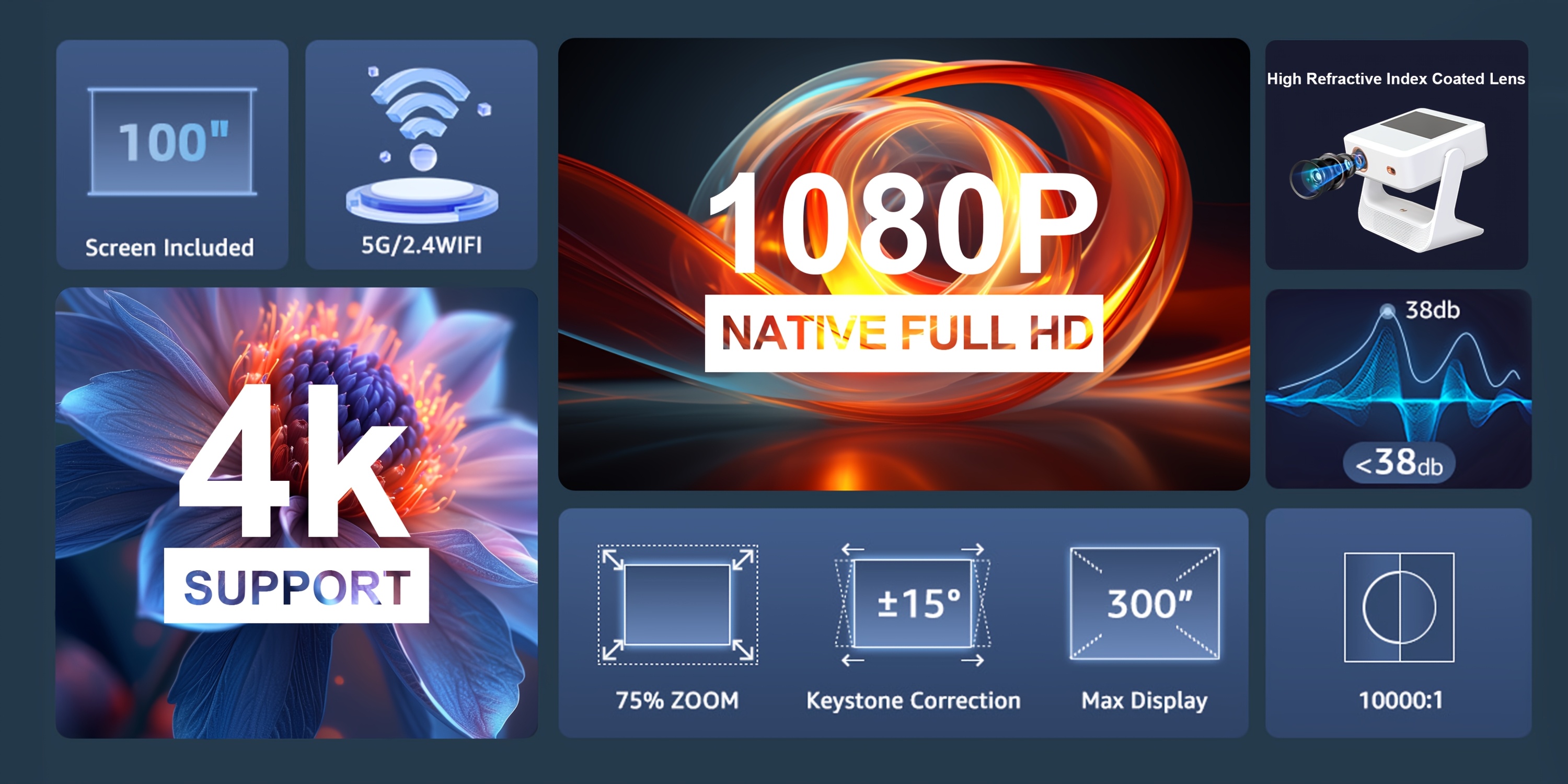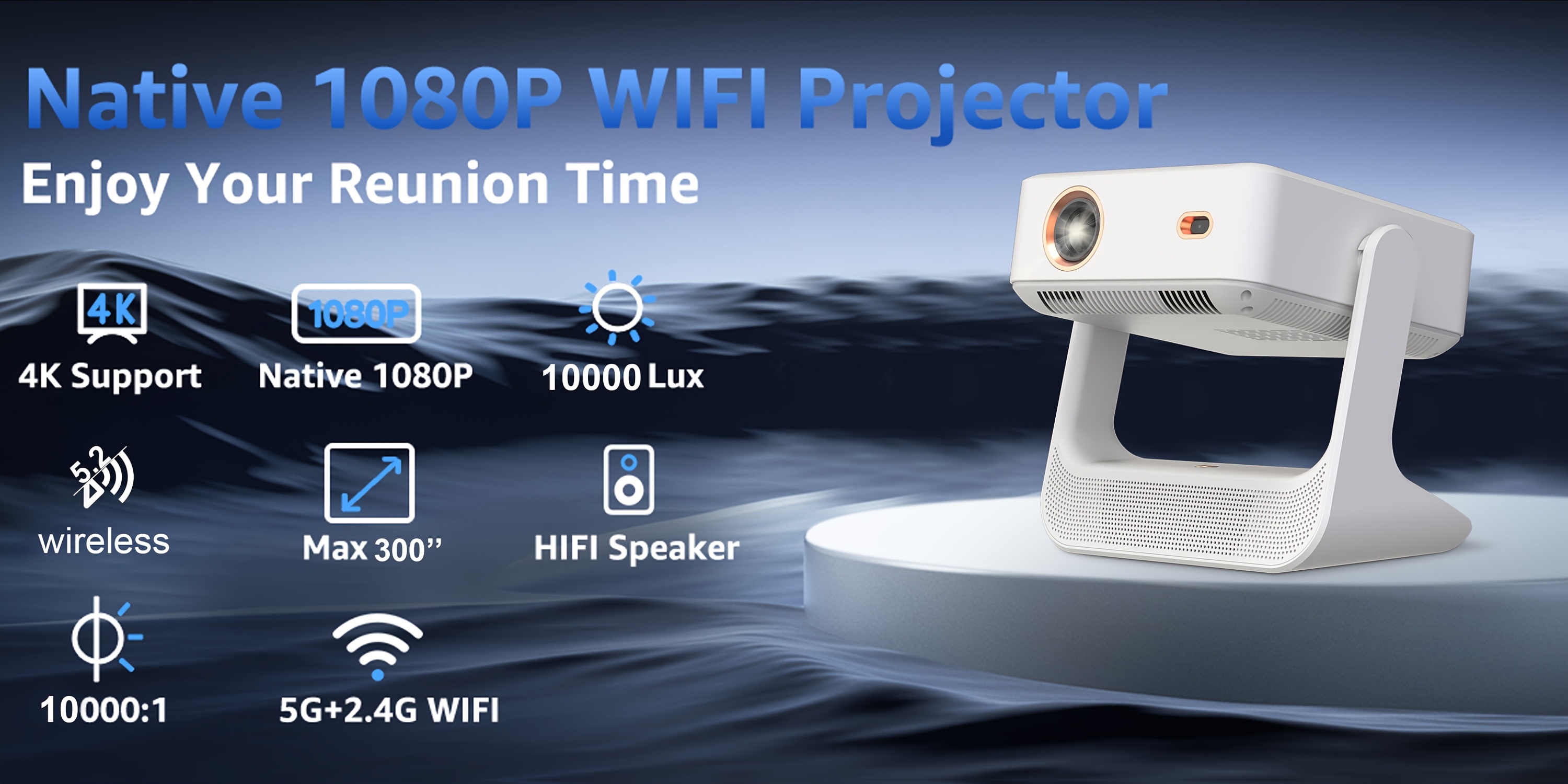 Наслаждайтесь качеством домашнего кинотеатра с нативным 1080P и декодированием 4K. После утомительного дня в офисе расслабьтесь на диване и наслаждайтесь спокойным просмотром фильмов с семьёй. Уровень яркости 400 ANSI позволяет приятно смотреть фильмы даже при дневном свете. Используя угол проекции 180°, вы можете отображать изображения на потолке, что дает возможность расслабиться и снять стресс после насыщенного рабочего дня. С Android 12.0 он совместим более чем с 5000 приложениями, предлагая разнообразные варианты для домашнего развлечения и просмотра. Наслаждайтесь острыми ощущениями от фильмов в комфорте вашего дома с размером проекции от 50 до 300 дюймов. Быстрый Wi-Fi 6 обеспечивает более надежное и быстрое соединение между проектором и смартфоном. По сравнению с Wi-Fi 5 он минимизирует задержки в графике игр, что обеспечивает лучший общий опыт. У вас есть выбор как беспроводных, так и проводных соединений, что обеспечивает быстрое и надежное подключение. Есть несколько способов подключения, включая беспроводное и кабельное, с доступом к более чем 4000 приложениям. Отличный выбор в качестве подарка для близких. Портативный мини-проектор с разрешением 4K, Android 12.0, 1080P, яркостью 400 ANSI люменов, подходит для домашнего и уличного кинотеатра, с регулируемым углом проекции 180°. Маленький по размеру, большой по возможностям. Декодирование 4K, настоящий 1080P — угол проекции 180° — яркость 400 ANSI люменов.