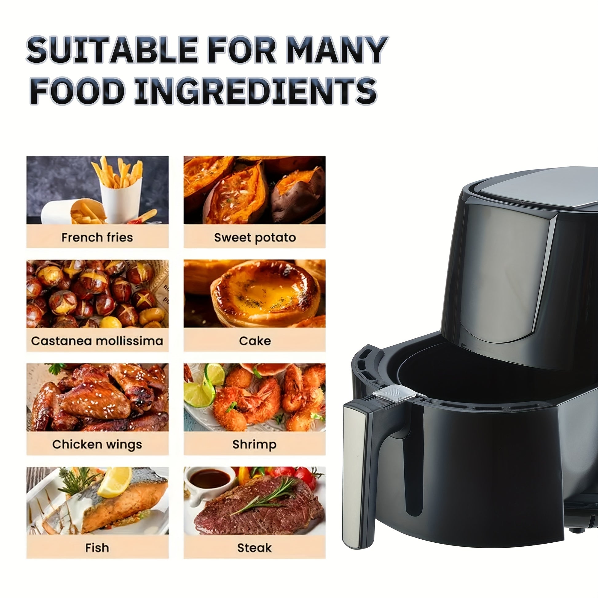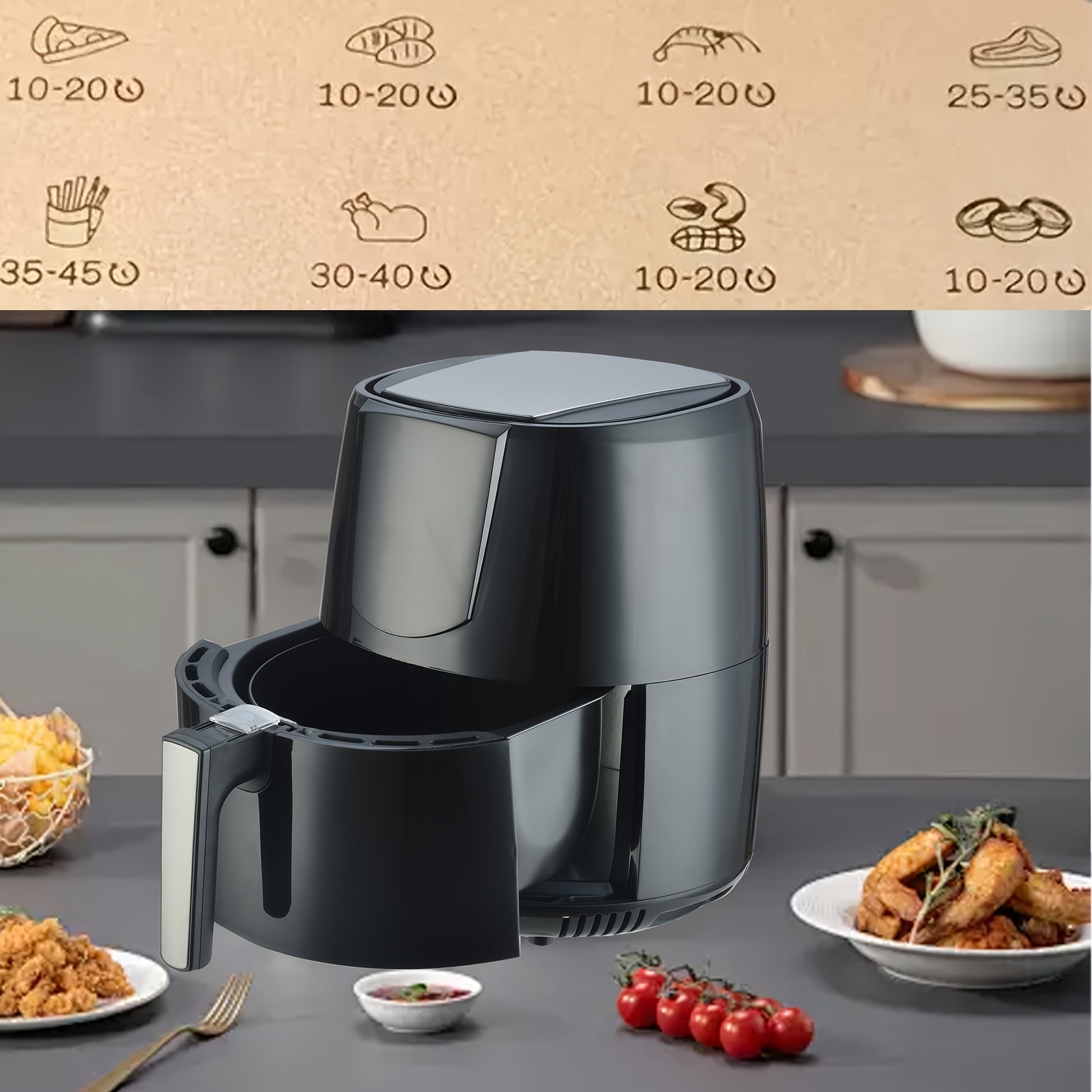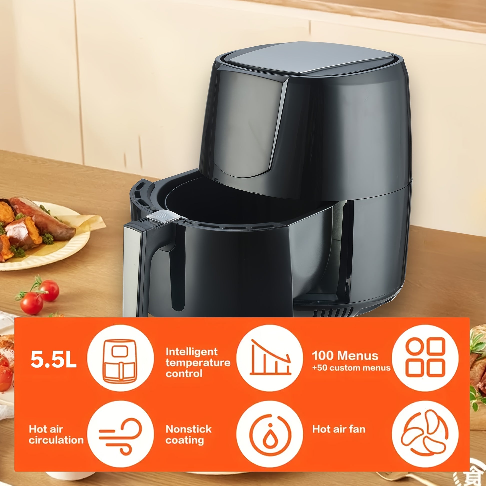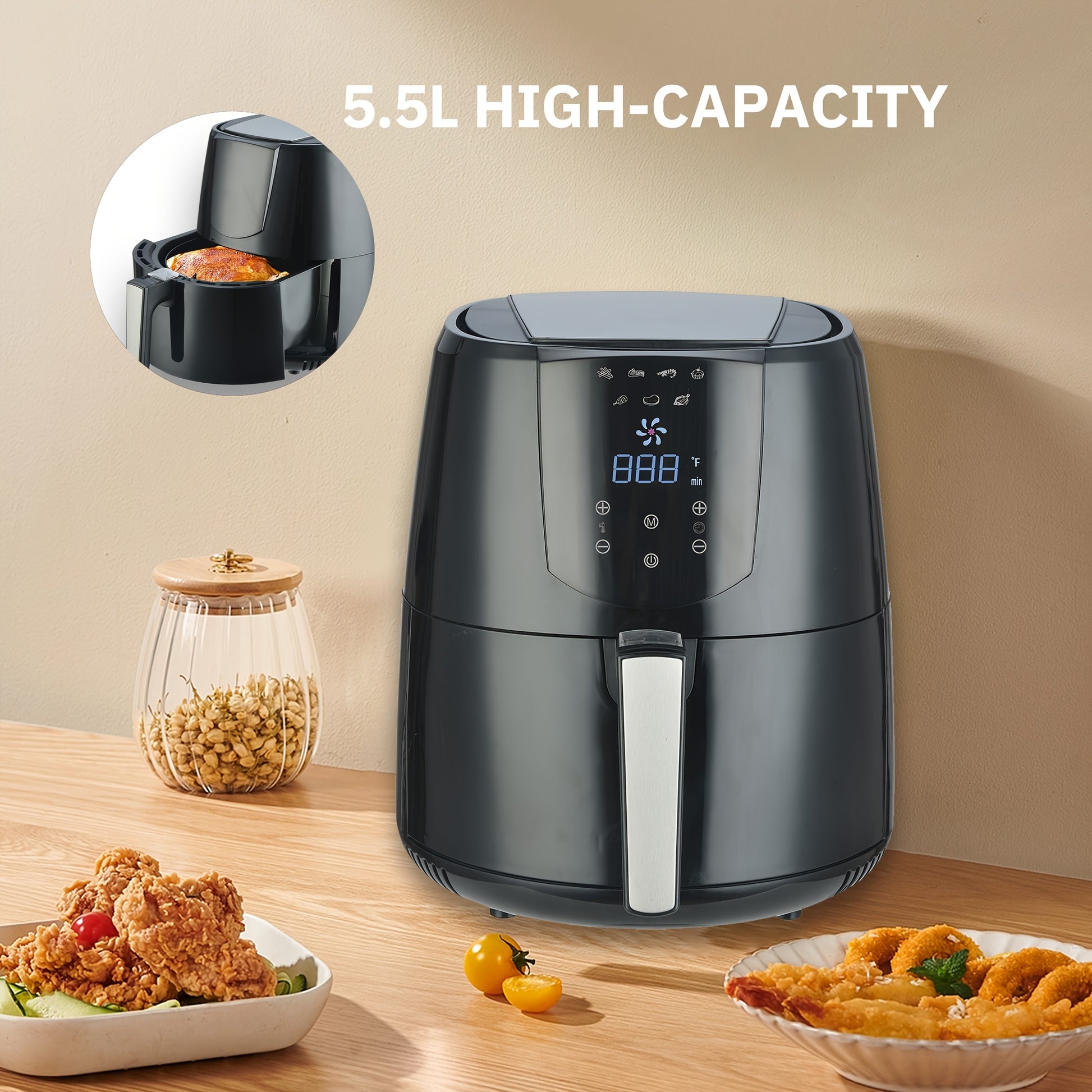 Цифровая аэрогриль 5.5Л LED-дисплей сенсорный экран без масла черный PP 1400Вт