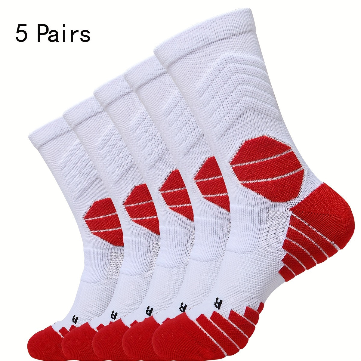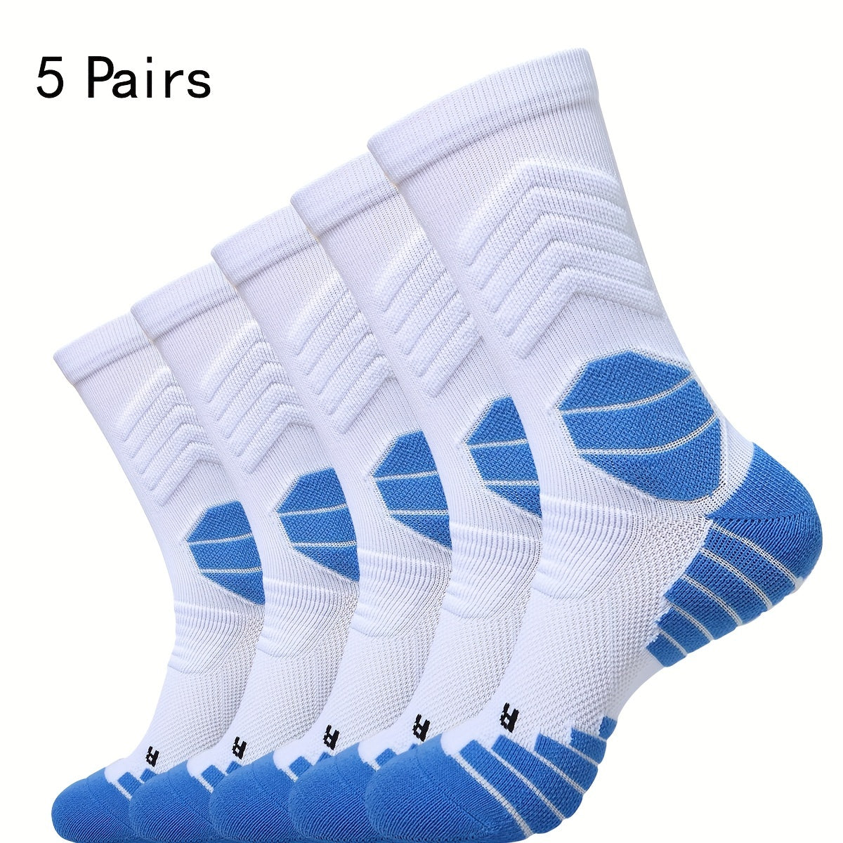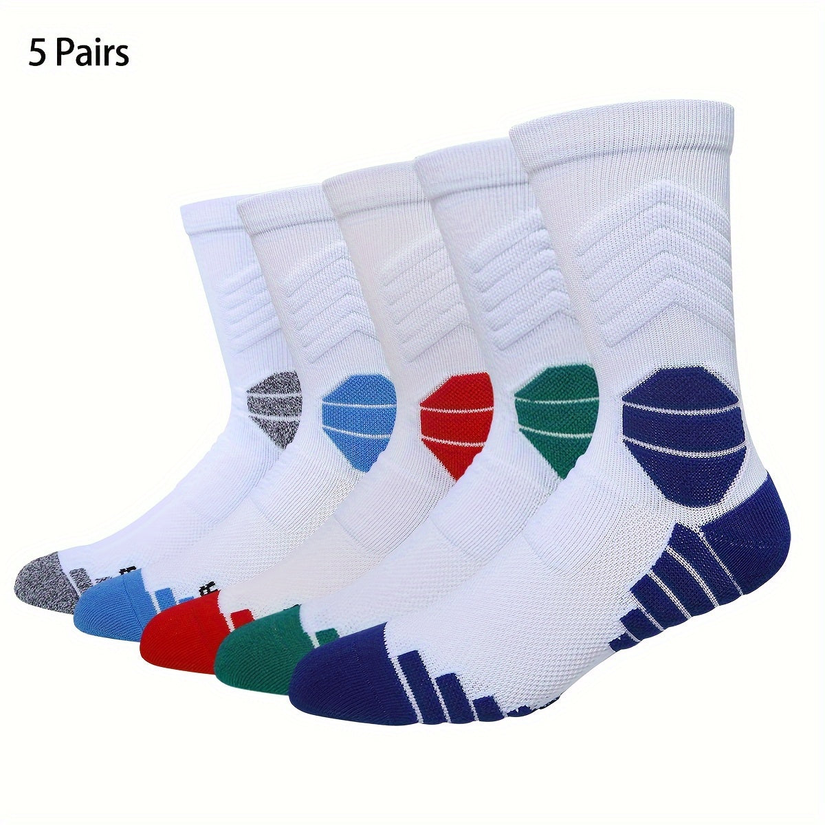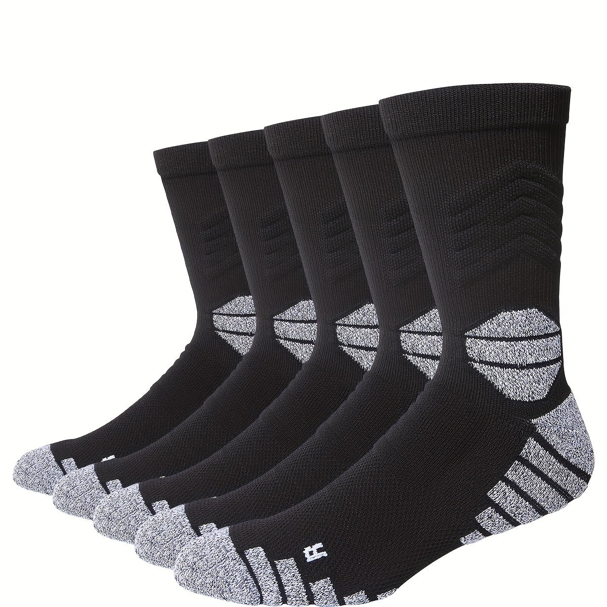 Мужские баскетбольные носки 5 пар, амортизированные носки для экипировки с однотонным цветом