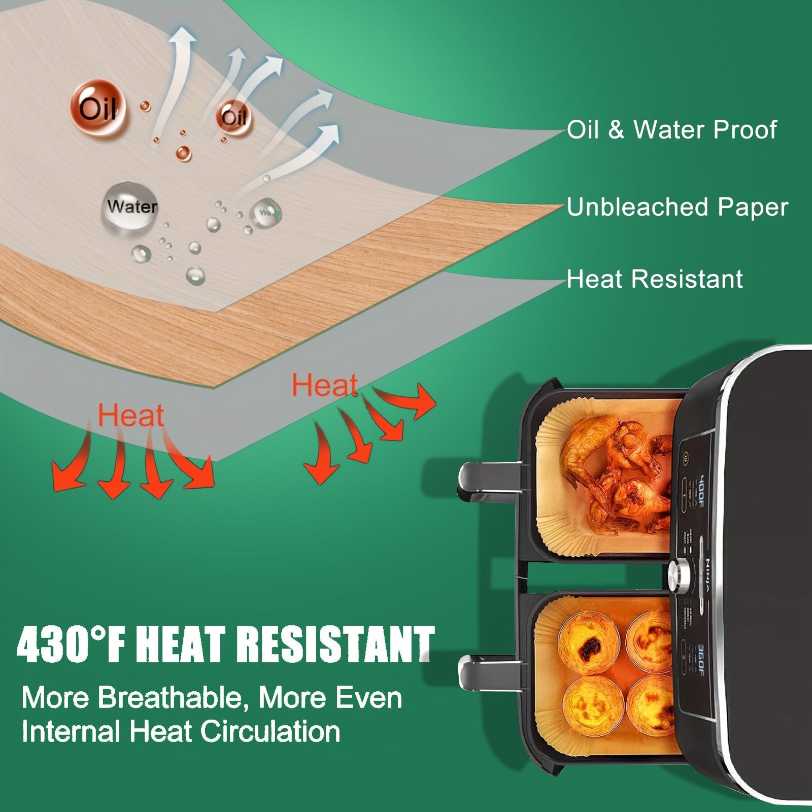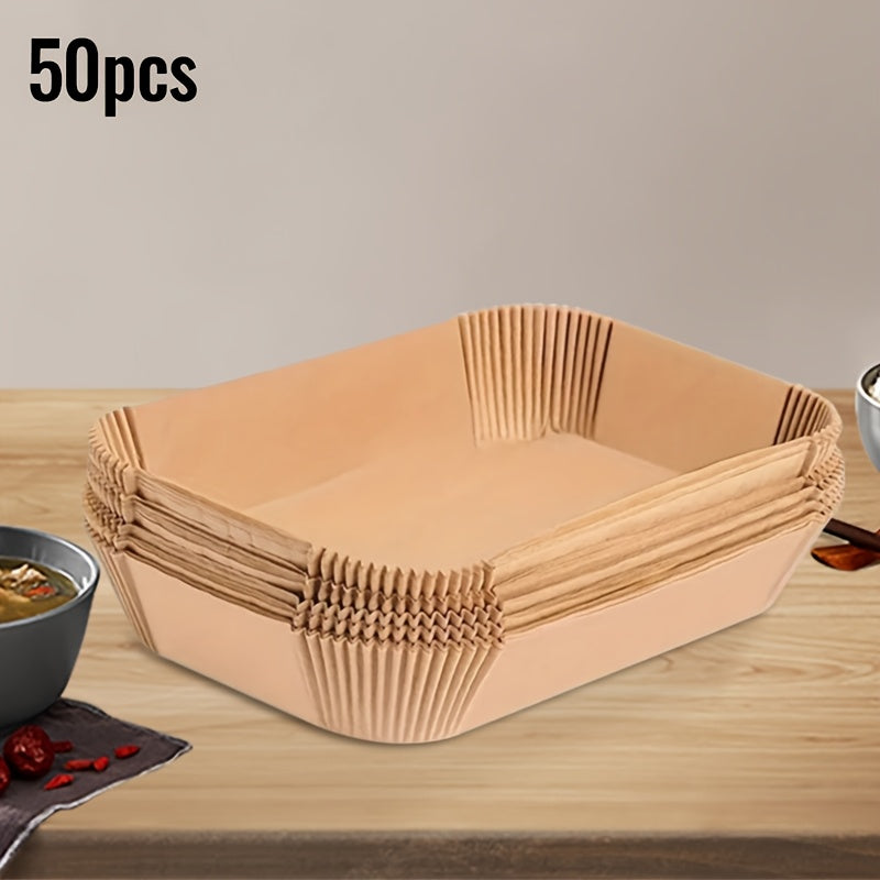 50-pack одноразовых подкладок для фритюрниц, квадратная антипригарная пергаментная бумага, устойчивая к маслу и воде. Эти безсвинцовые листы для выпечки пищевого качества идеально подходят для приготовления в фритюрнице.