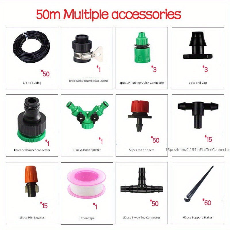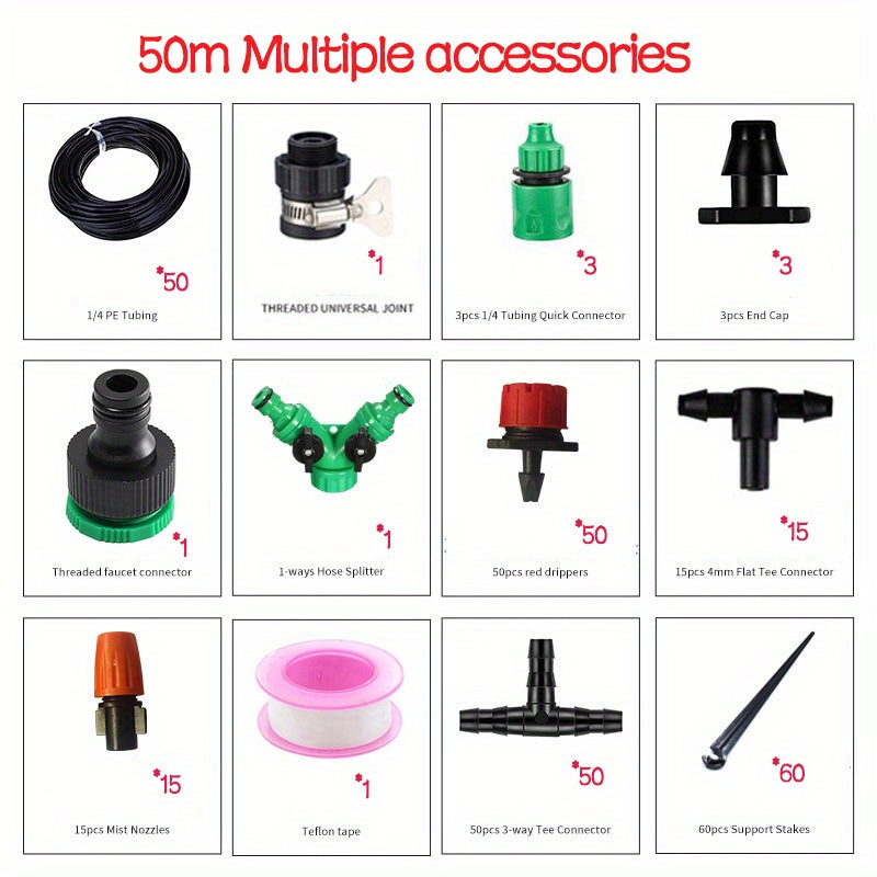 50м комплект капельного орошения из ПВХ для уличных садов без аккумулятора