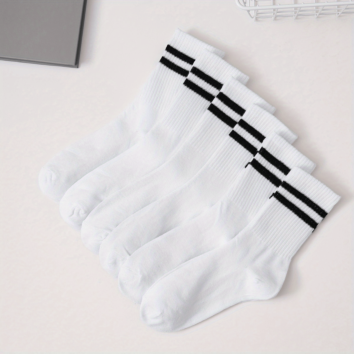 6 пар удобных полосатых носок средней длины для женщин, идеально подходящих для спорта и стиля колледжа.