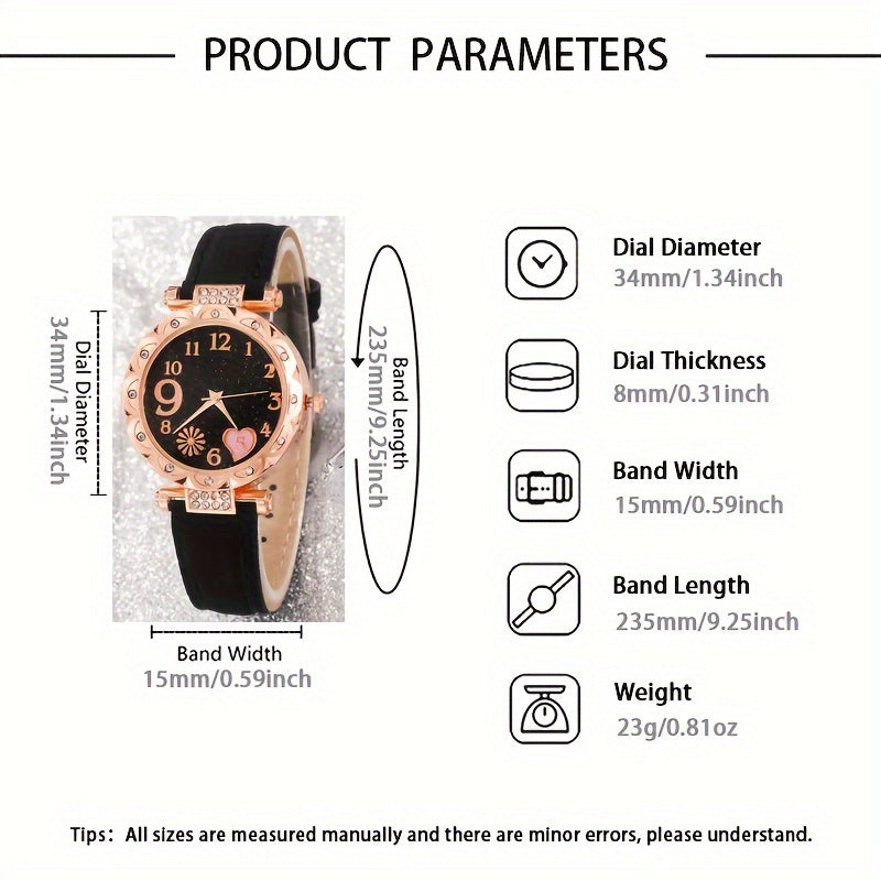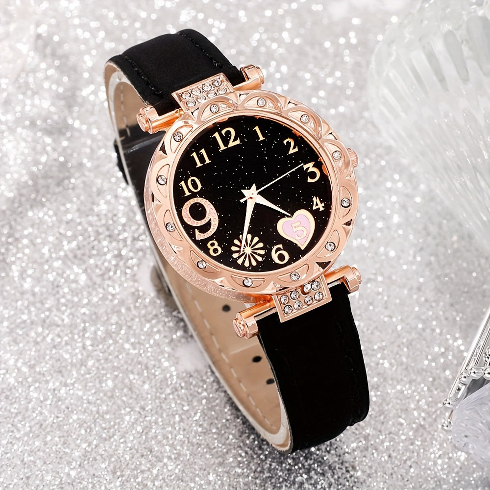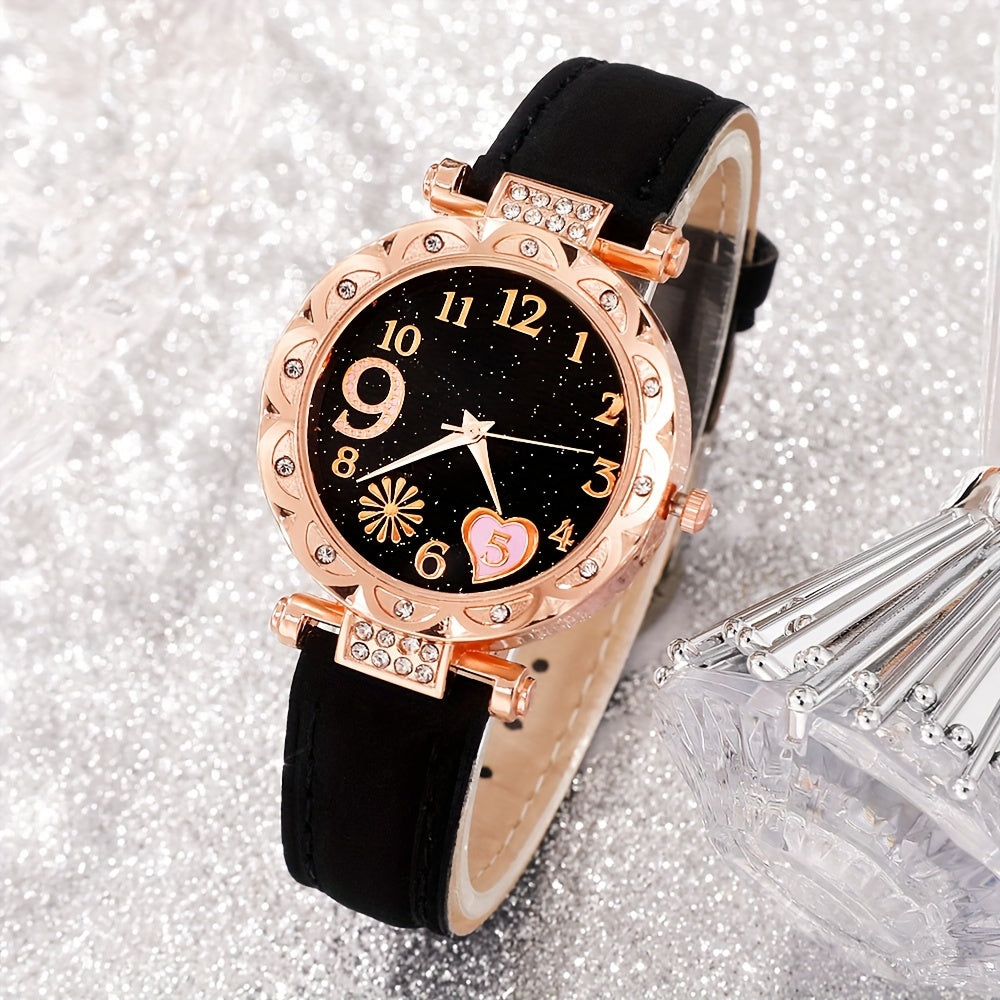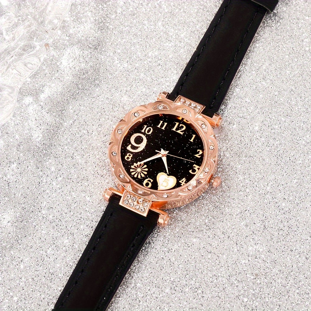 Шесть штук кварцевых часов с ремешками из PU-кожи, стрелками из цинкового сплава, украшения для Дня святого Валентина, Пасхи, Рамадана, дней рождения, Дня матери