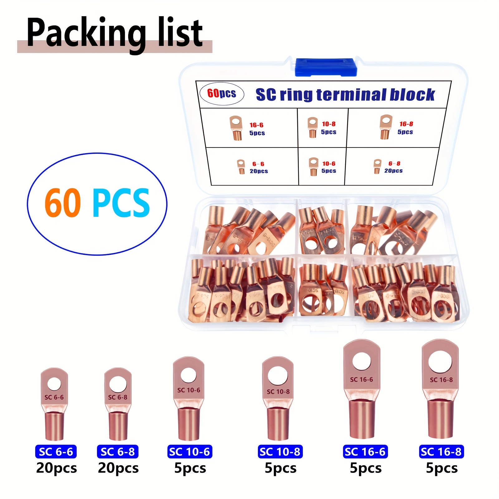Набор из 60 шт. клеммных колец для аккумуляторных клемм для транспортных средств, судов, распределения электроэнергии