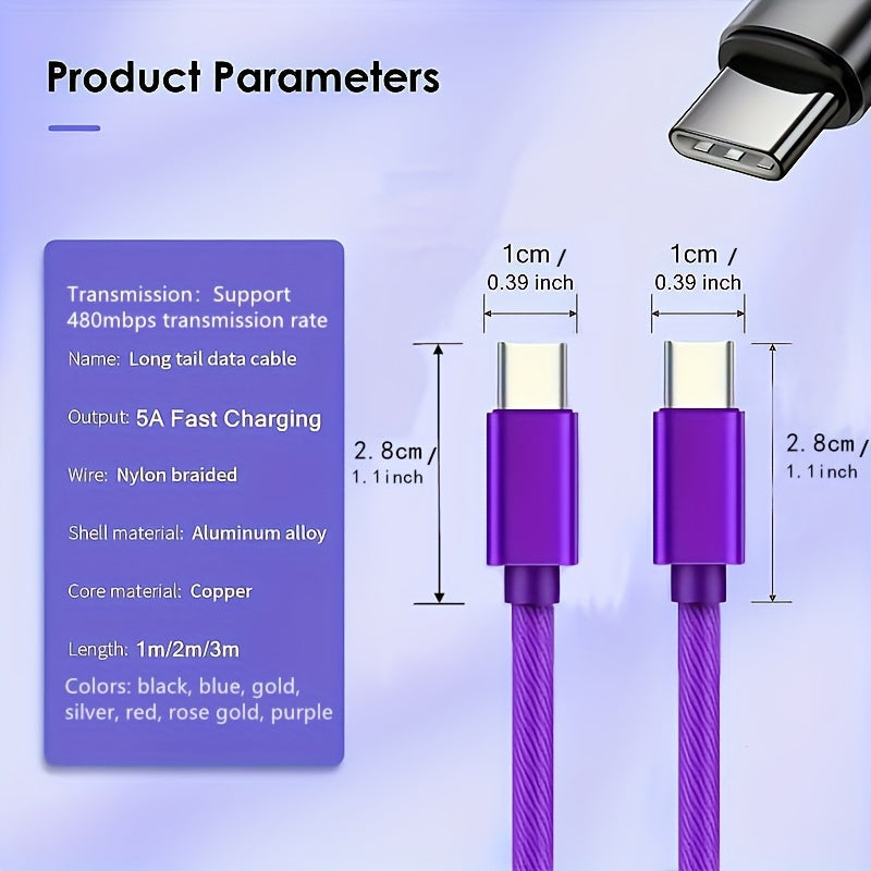 60W нейлоновый USB C кабель для зарядки и быстрой передачи данных для iPhone, Samsung, Xiaomi
