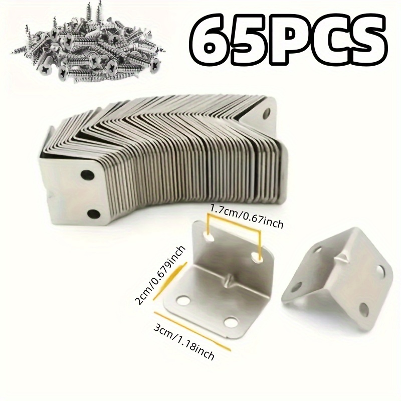 65 шт. металлических уголков-скобок L-образной формы из нержавеющей стали, кронштейны под прямым углом