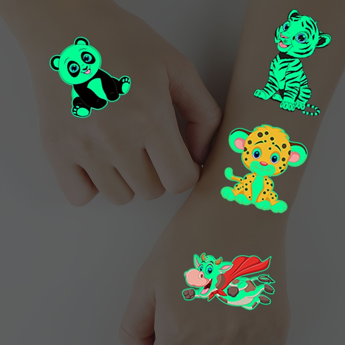 68 штук Временных татуировок с люминесцентным эффектом для детей, серия животных, водостойкие наклейки