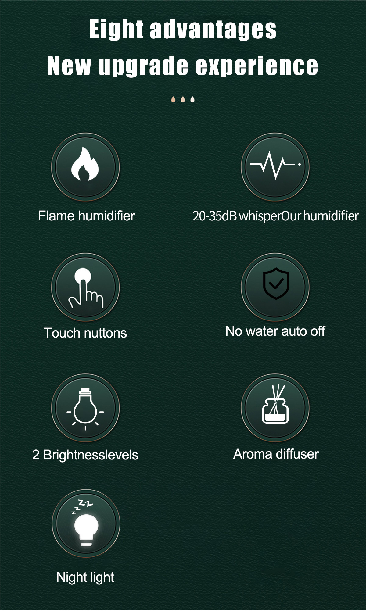 7-Цветной увлажнитель с пламенем, звуковой волной, ароматерапией и подсветкой
