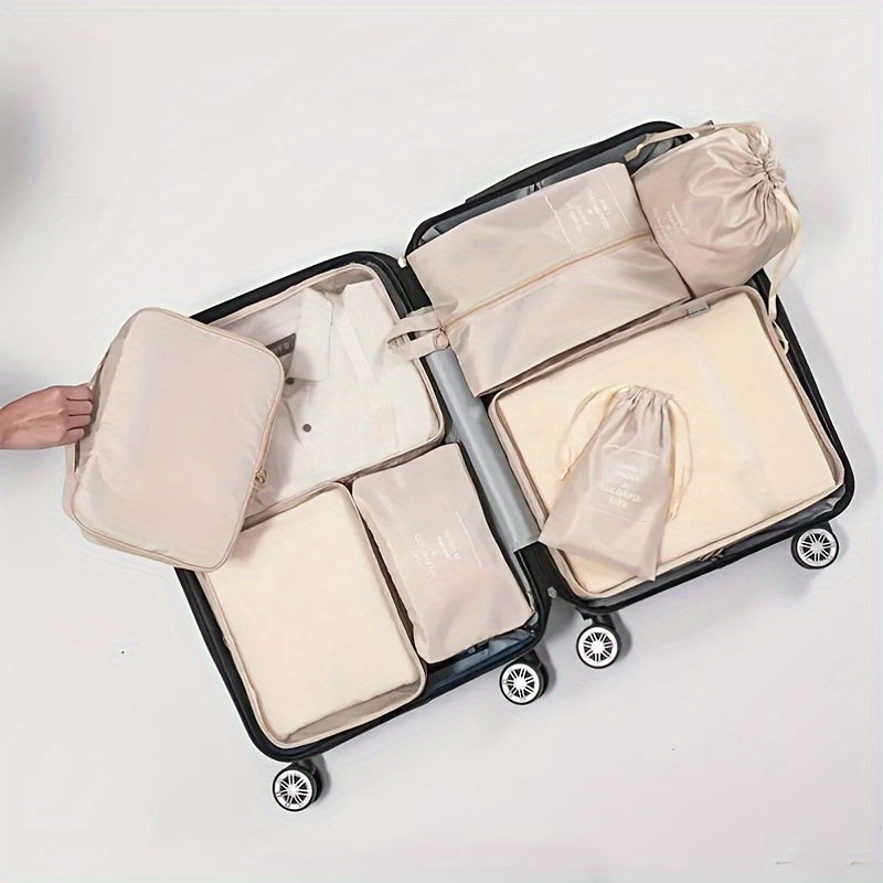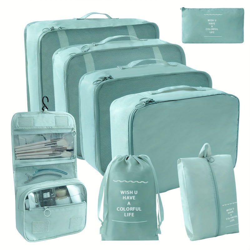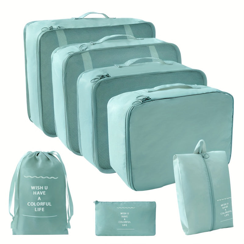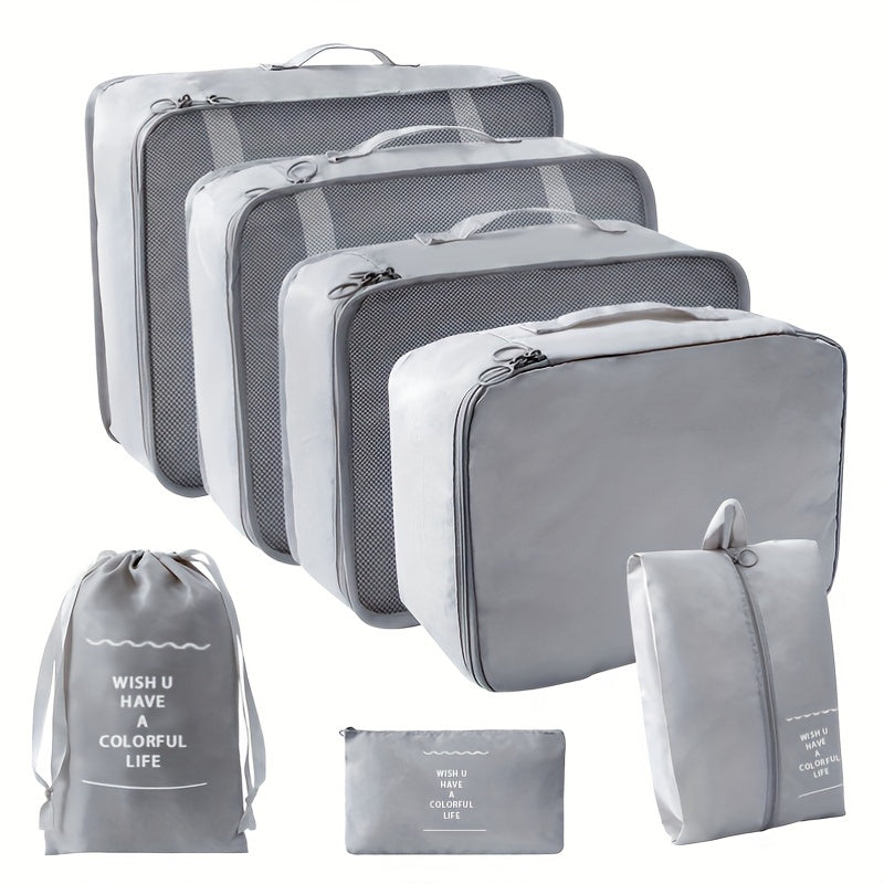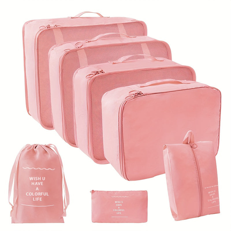 Розовый набор для путешествий из 7 прочных полиэстеровых кубов для упаковки с вдохновляющими цитатами