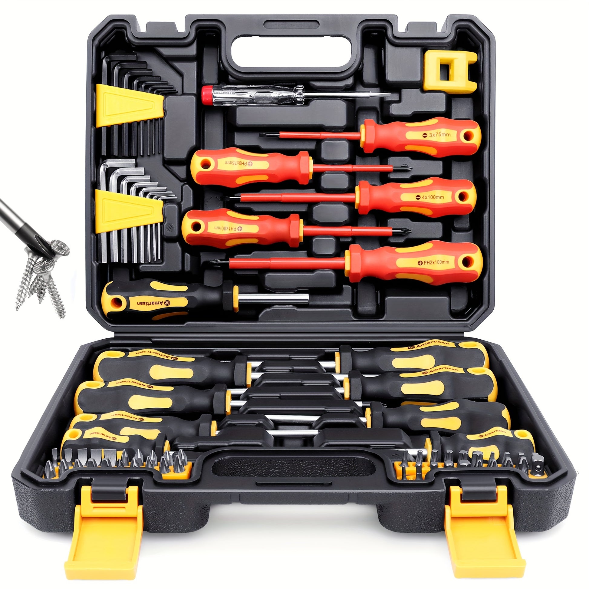 Набор магнитных отверток из 72 предметов с кейсом, стальные биты из хром-ванадиевой стали, плоская, крестовая, Торкс, шестигранные, для профессионального использования