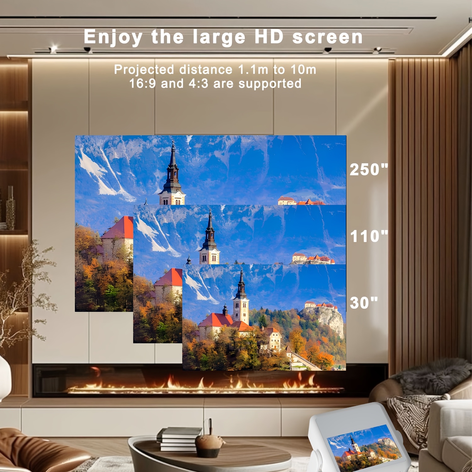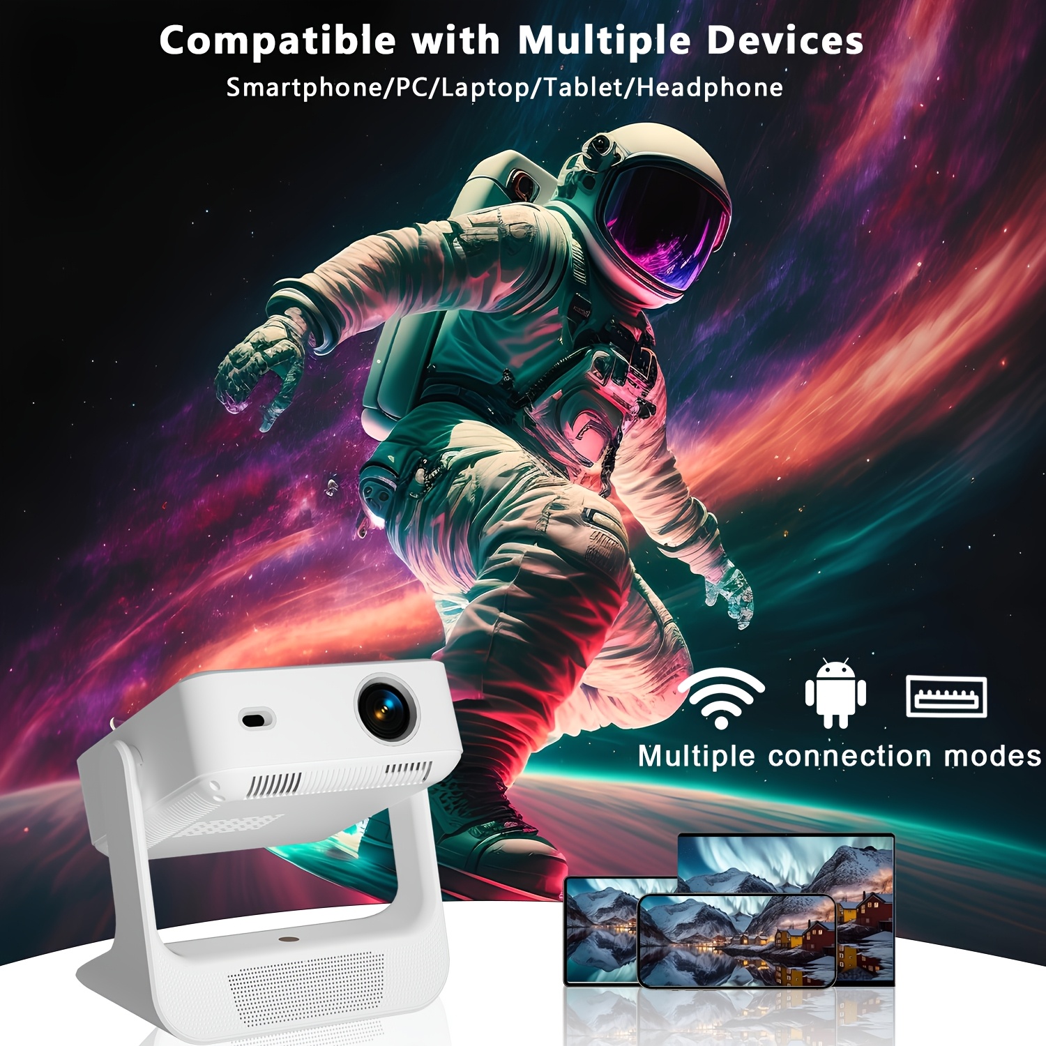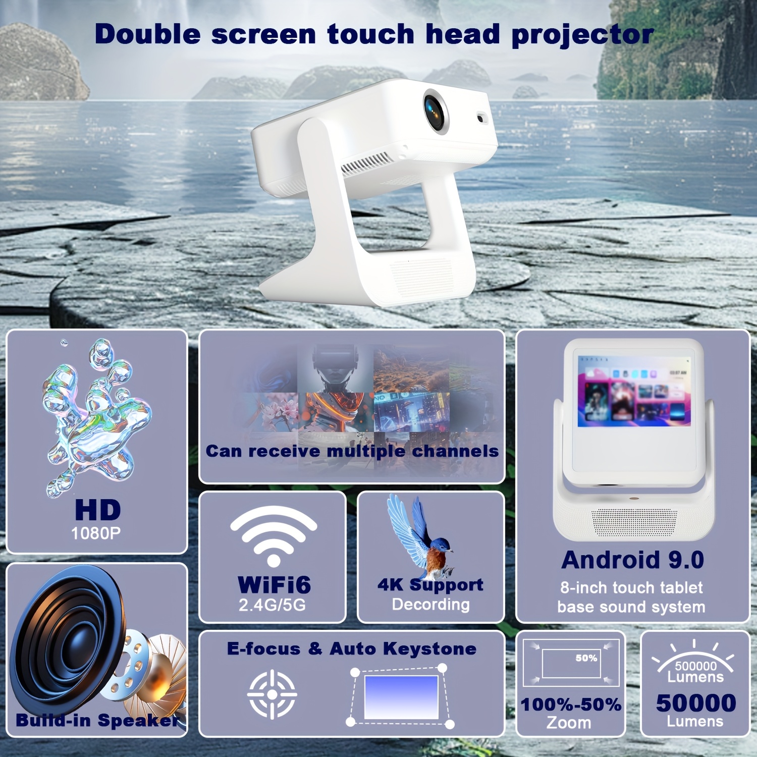 Проектор с поддержкой 8-дюймового Smart 4K, HD 1080P, Android 12, WIFI6