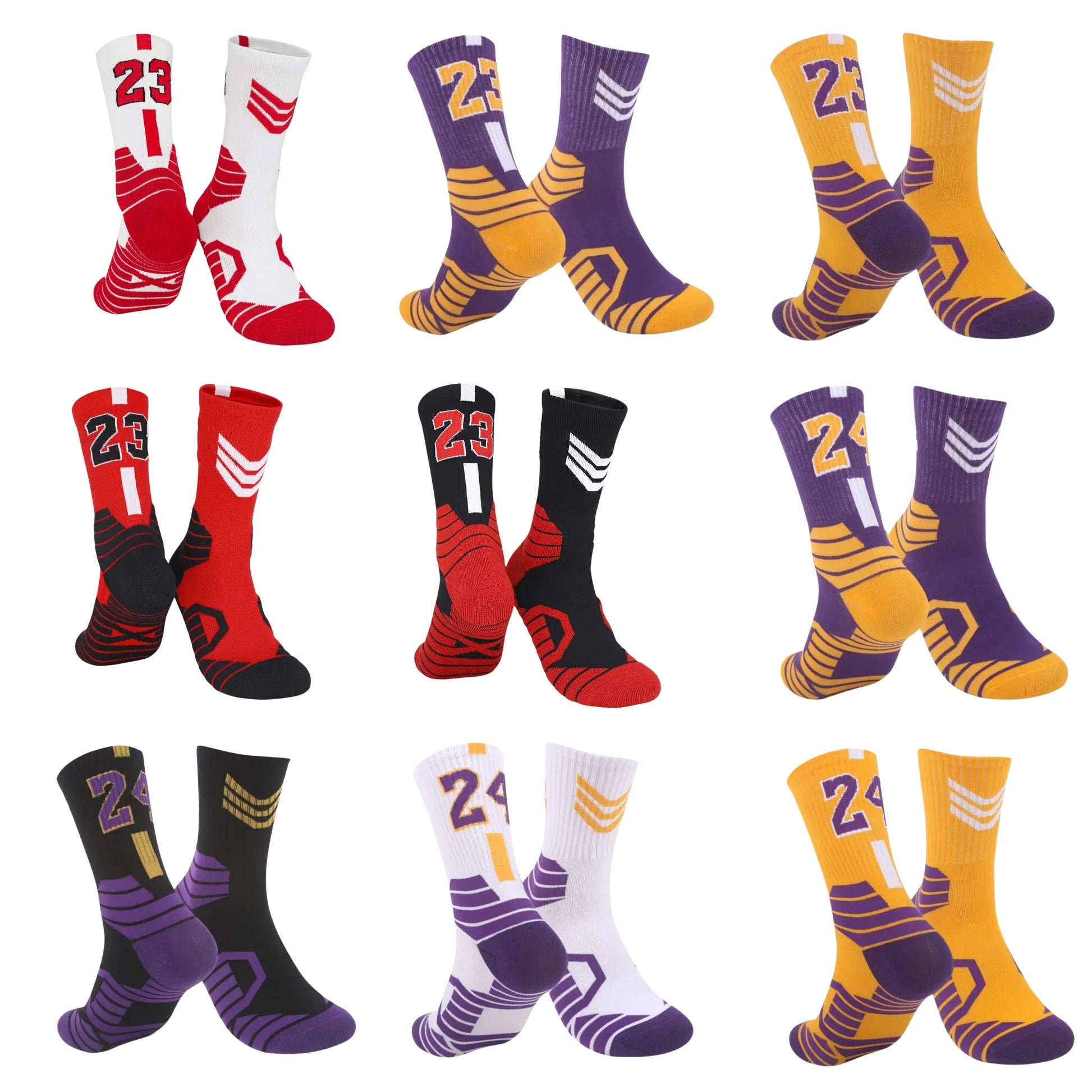 Мужские баскетбольные носки, набор из 9 пар, дышащие, с амортизацией, вязка из полиэстера, номер 23 24, с принтом