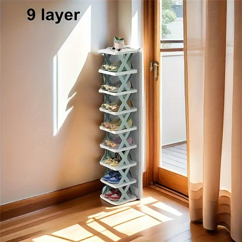 9-уровневая складная полка для обуви из прочного пластика — компактный напольный органайзер для прихожей, спальни, гостиной и общежития