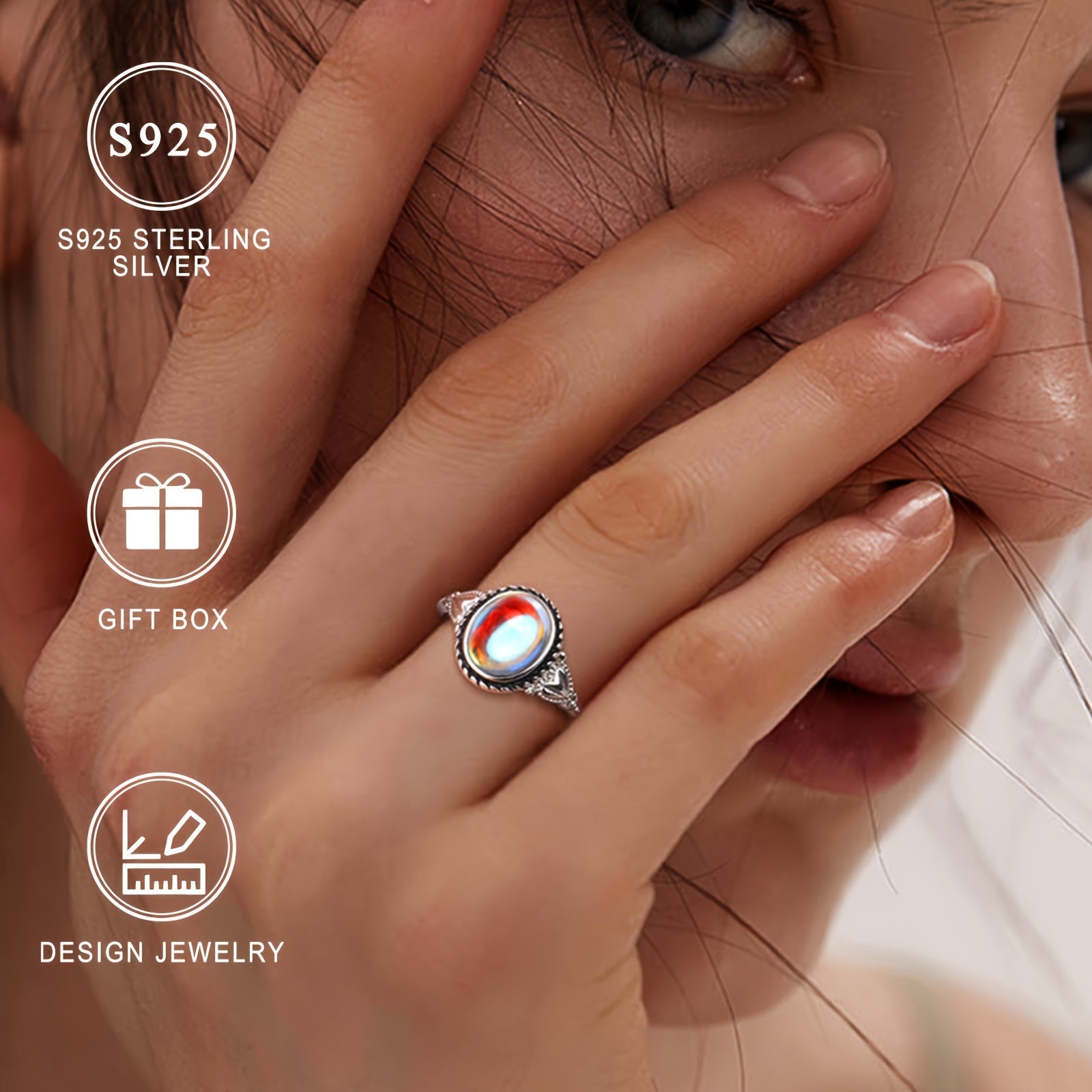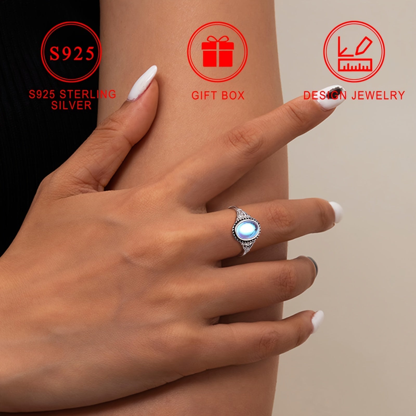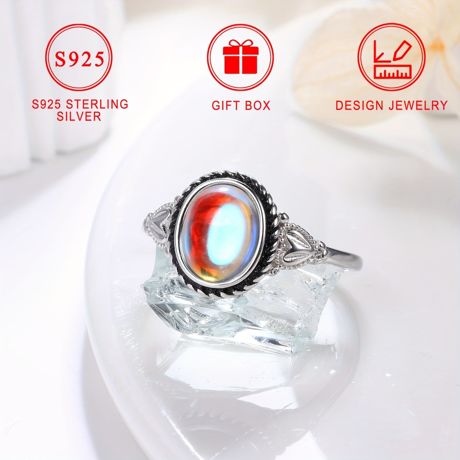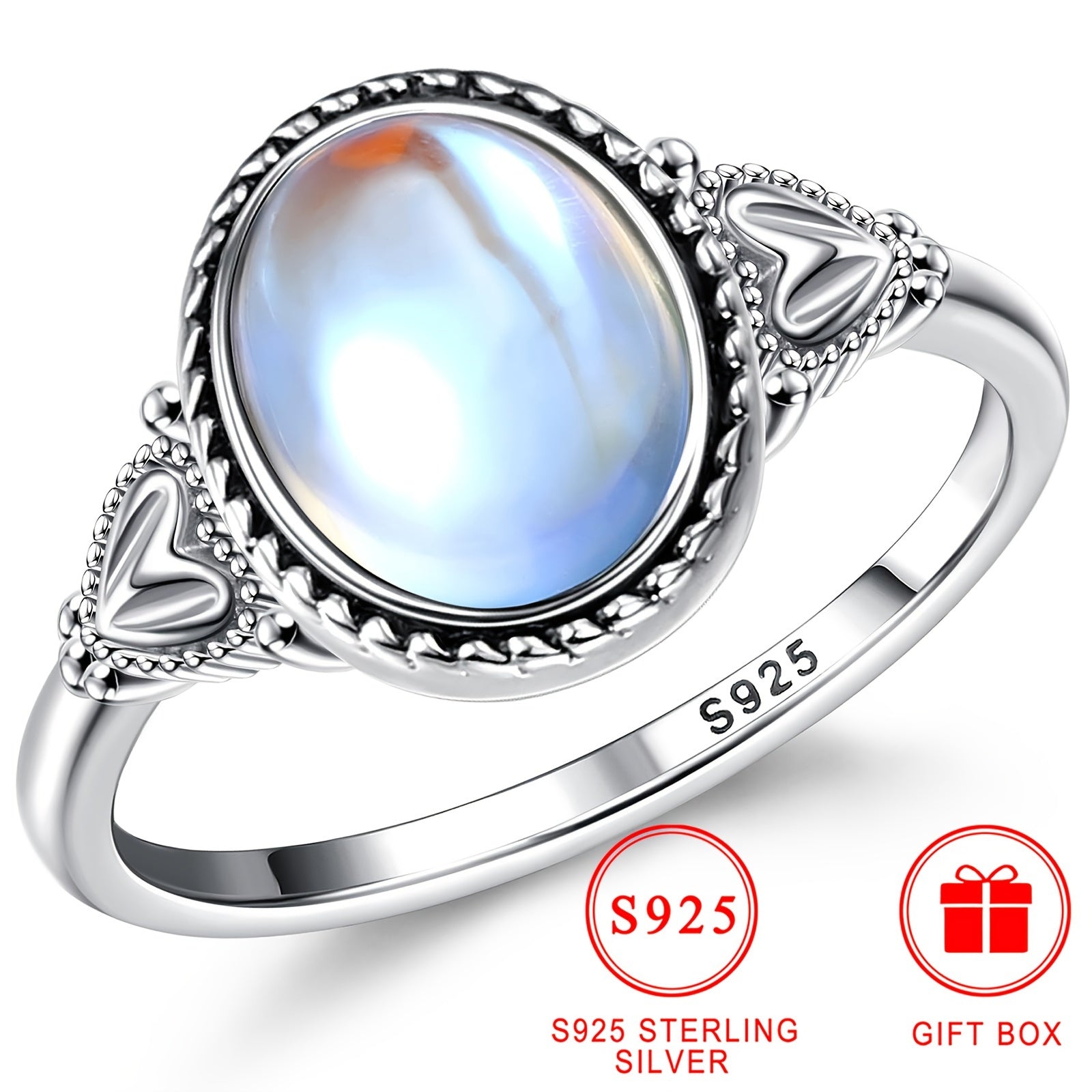 Серебряное кольцо в форме сердца с овальным лунным камнем в винтажном стиле для женщин
