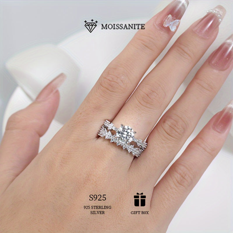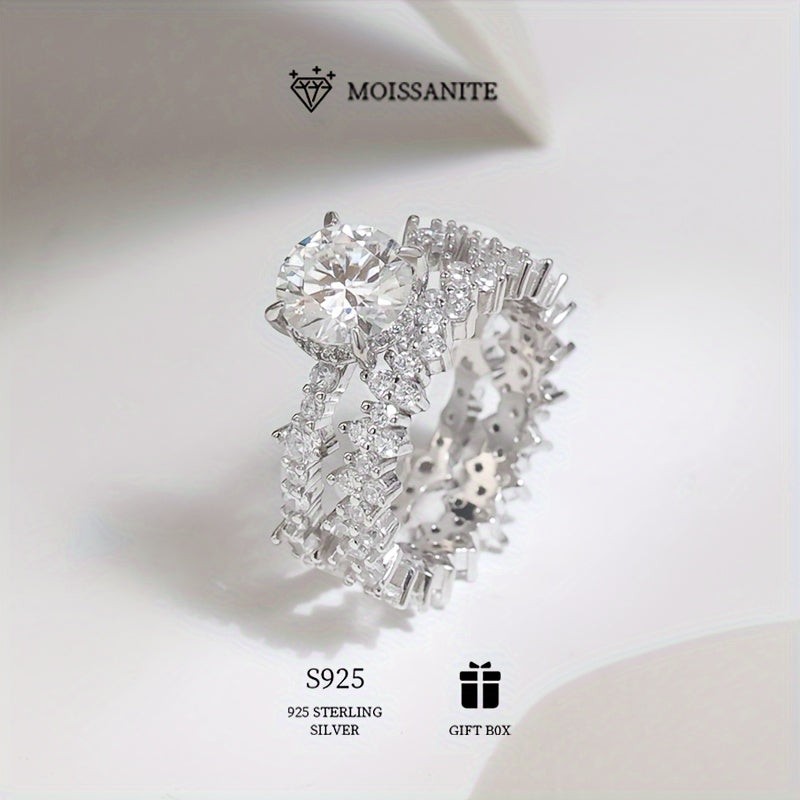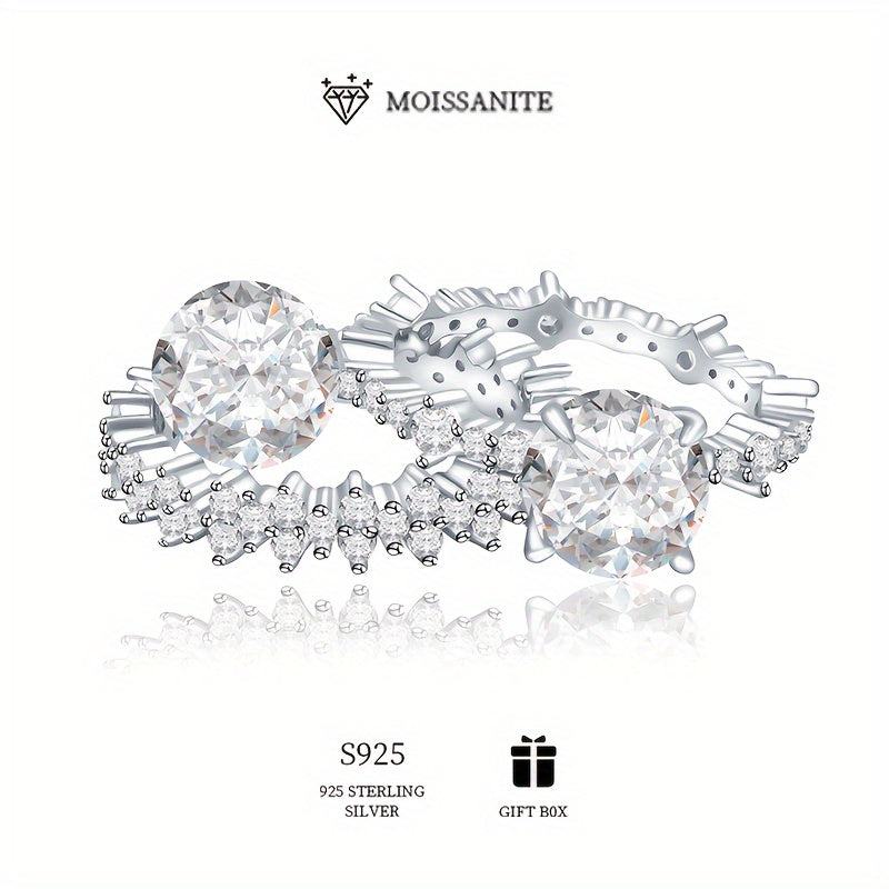 925 стерлинговое серебро, набор из 3-х колец с моиссанитом - элегантный и роскошный символ высокого качества, идеально подходит для вечерних мероприятий и в качестве особого подарка для вашего любимого человека.