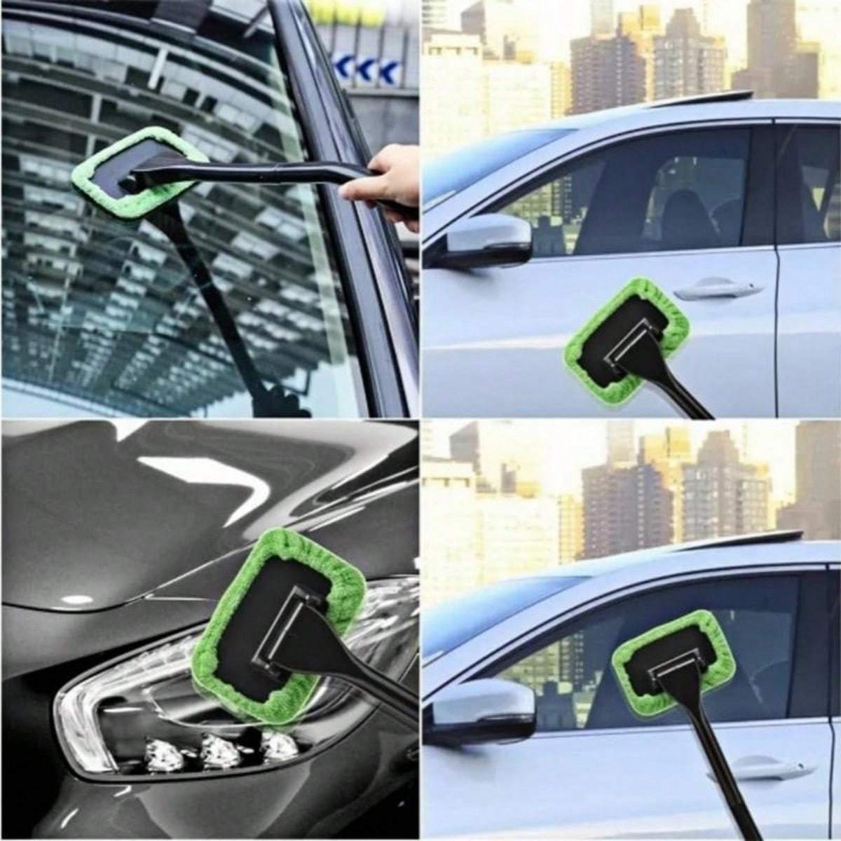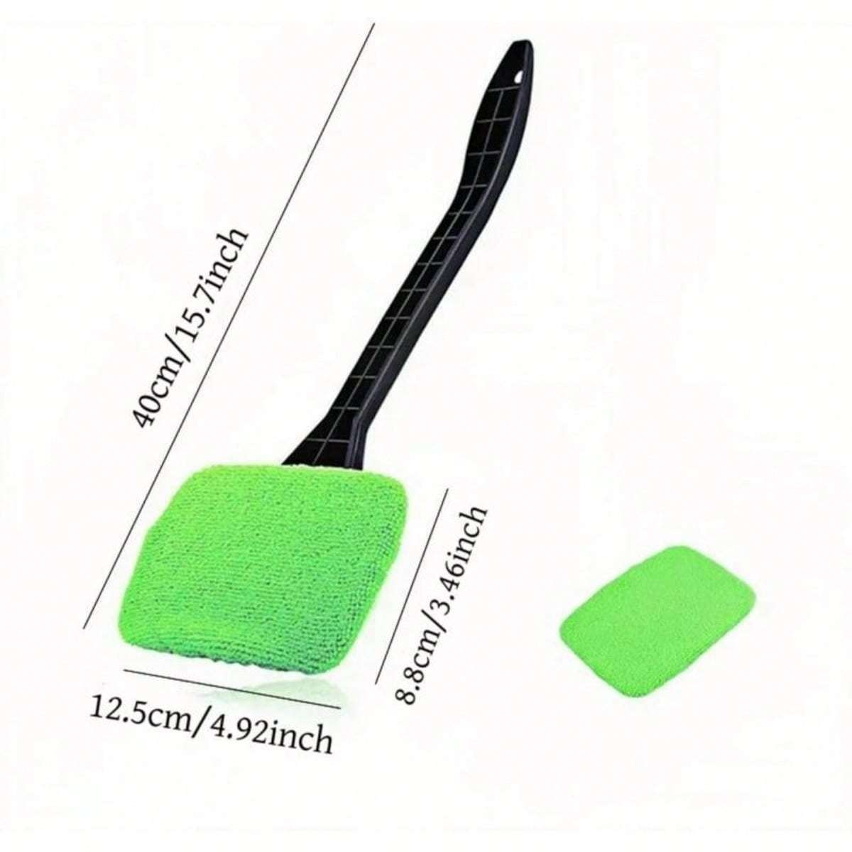 Набор для очистки окон автомобиля из 9 предметов с микрофибровыми насадками, выдвижными ручками, зеленый