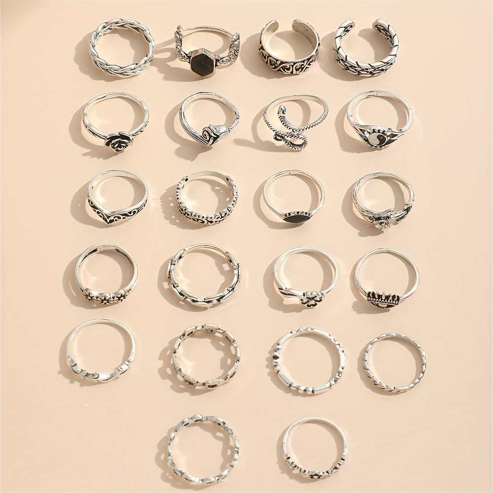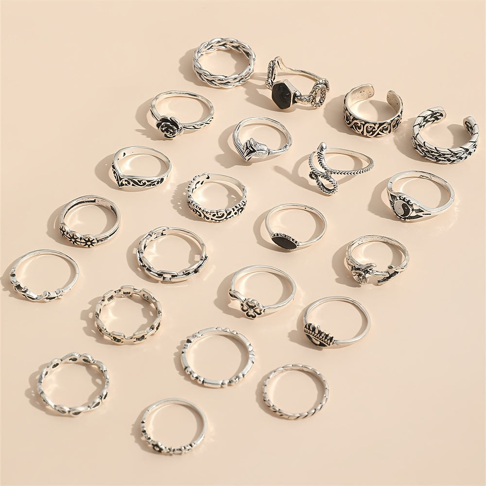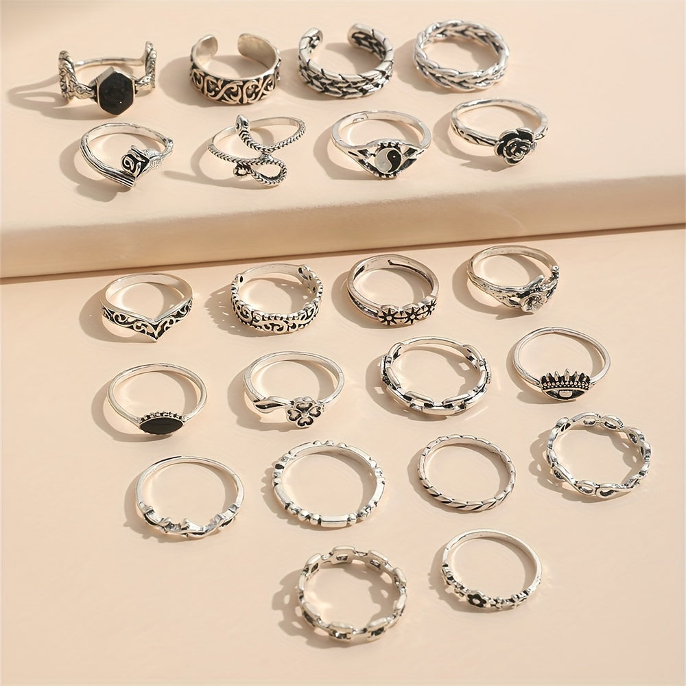 Коллекция из 22 винтажных колец с резьбой в виде розы, вдохновленных масляными каплями и змеиними глазами, подходит как для мужчин, так и для женщин.