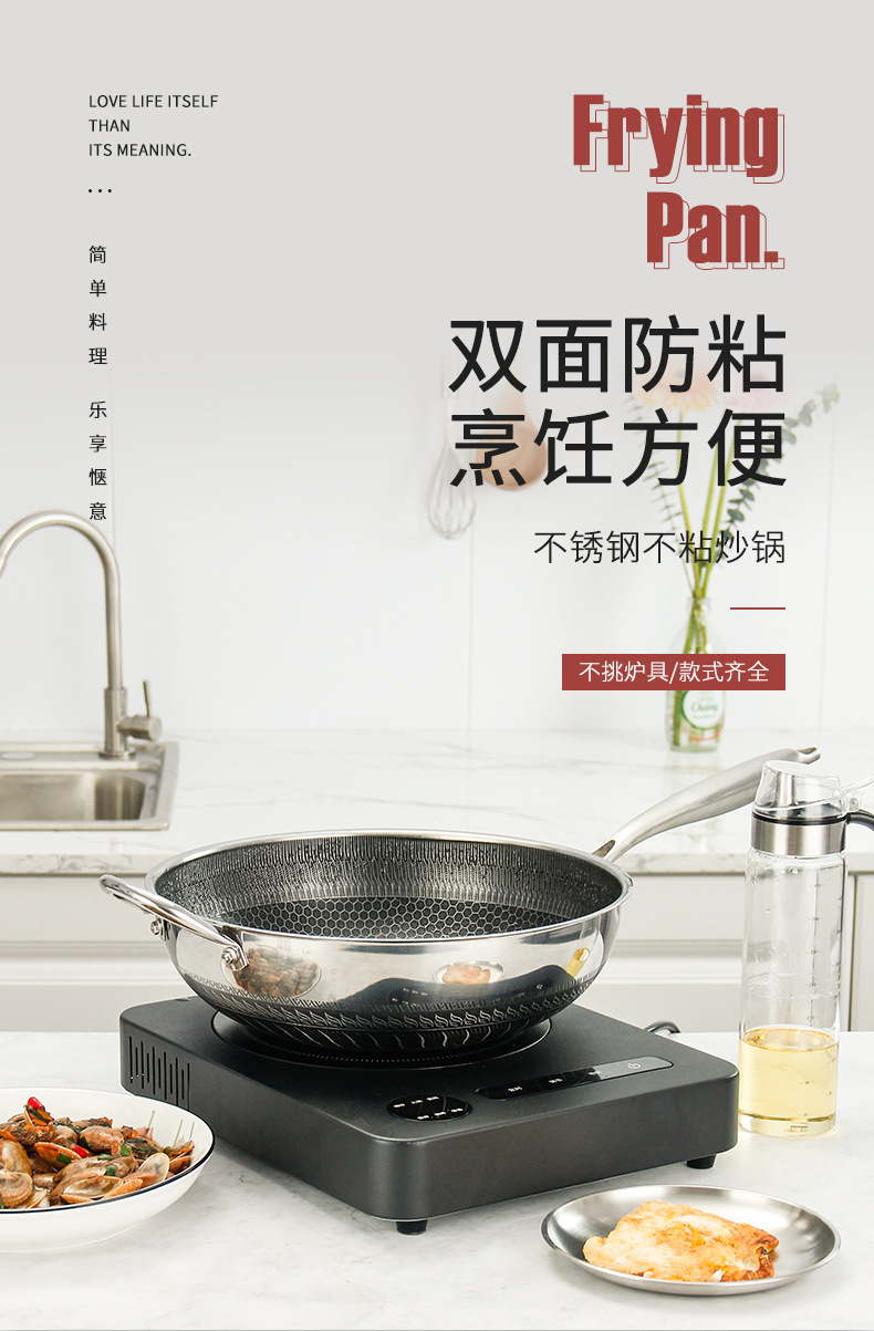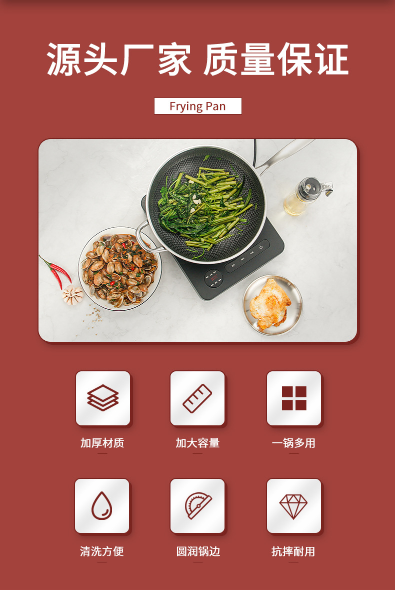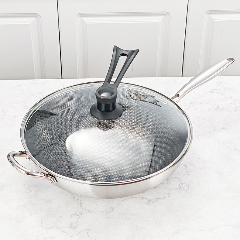 Антипригарная нержавеющая стальная сковорода с сотчатым дизайном, трехслойная, для приготовления с меньшим дымом