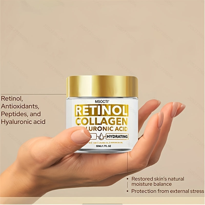 Увлажняющий крем для всех типов кожи, содержащий ретинол, коллаген, масло ши, витамин C, алоэ вера и гиалуроновую кислоту.