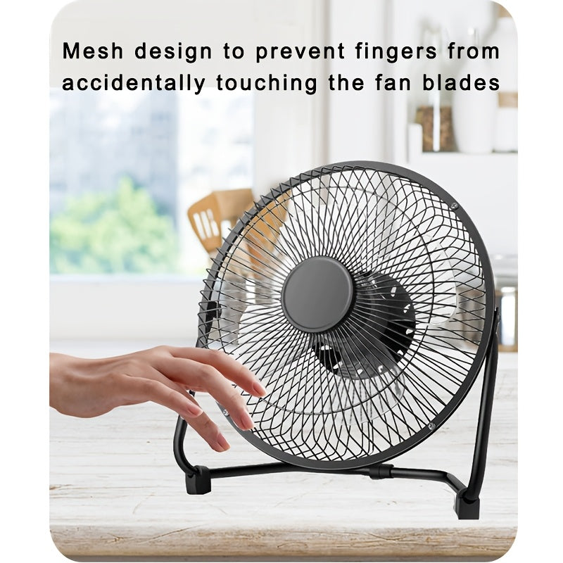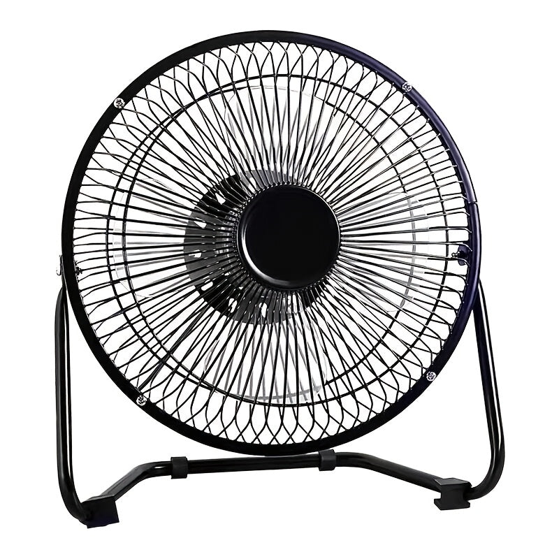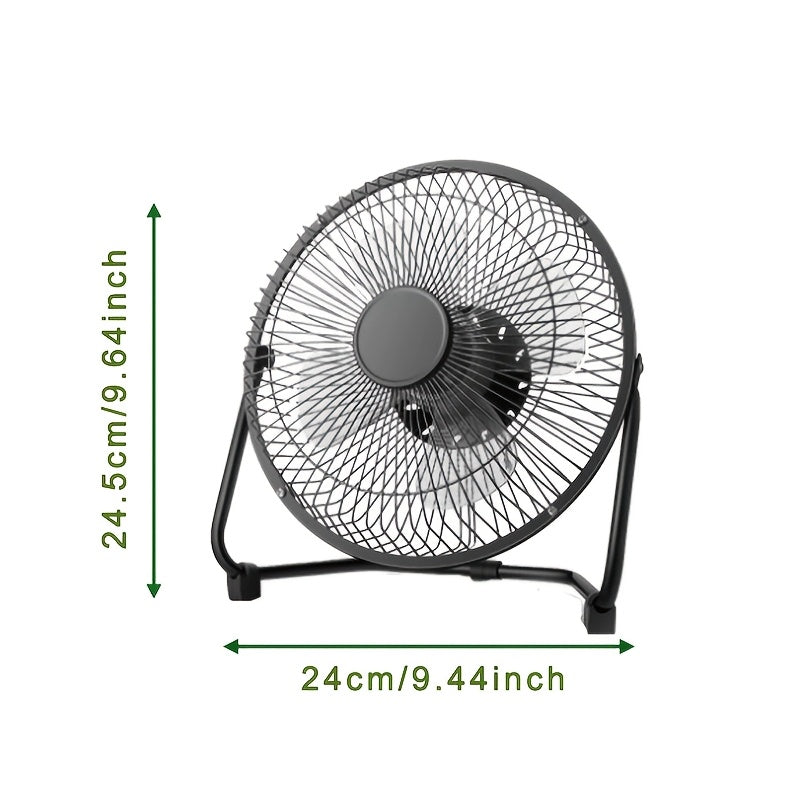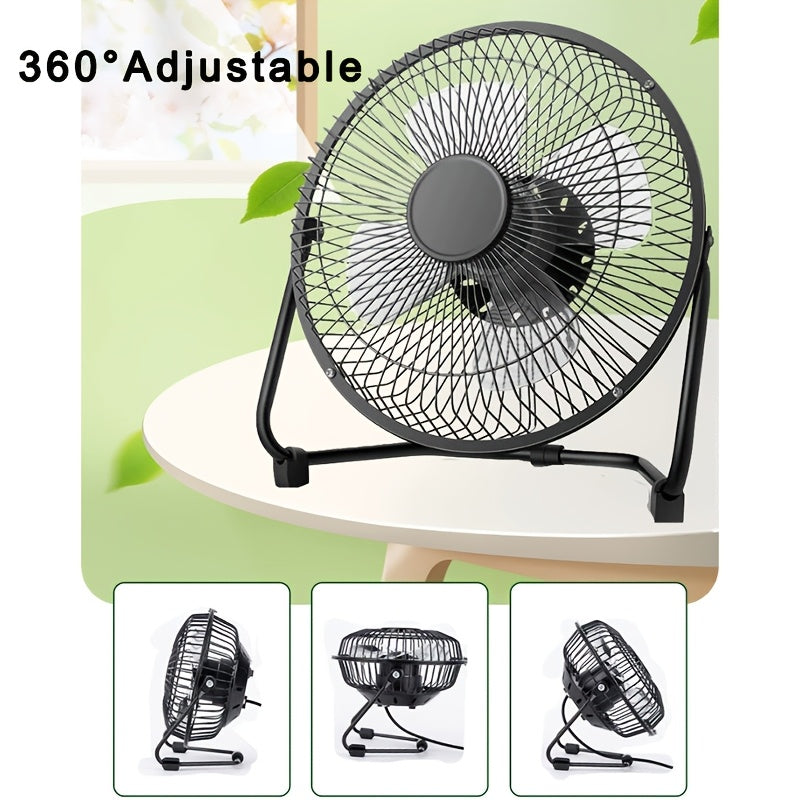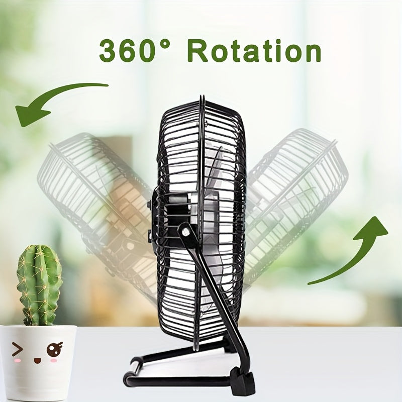 Портативный настольный вентилятор с USB-подключением и стильным 8-дюймовым железным арт-дизайном. Имеет 2 регулируемые скорости, 4 прочные лопасти вентилятора и регулируемый угол на 360° для максимального воздушного потока.