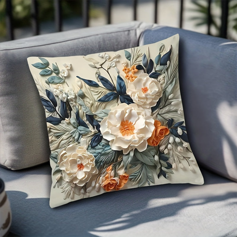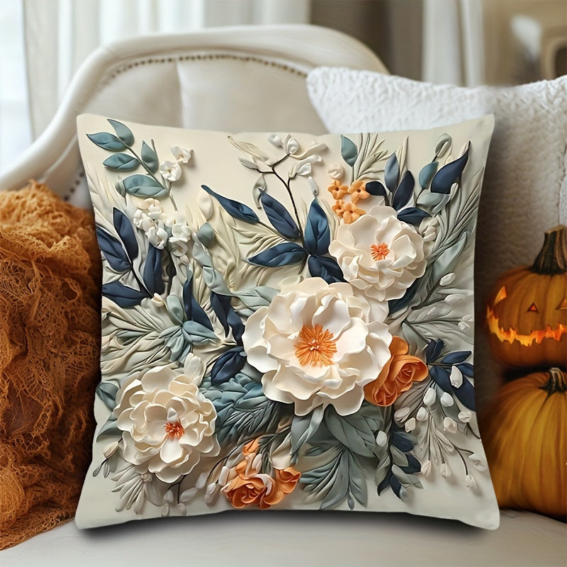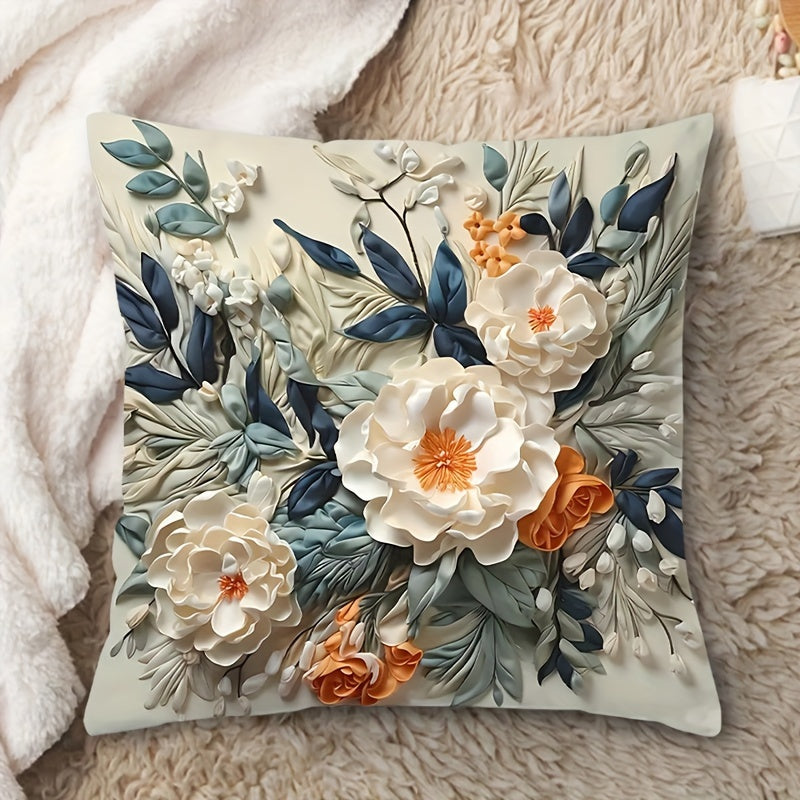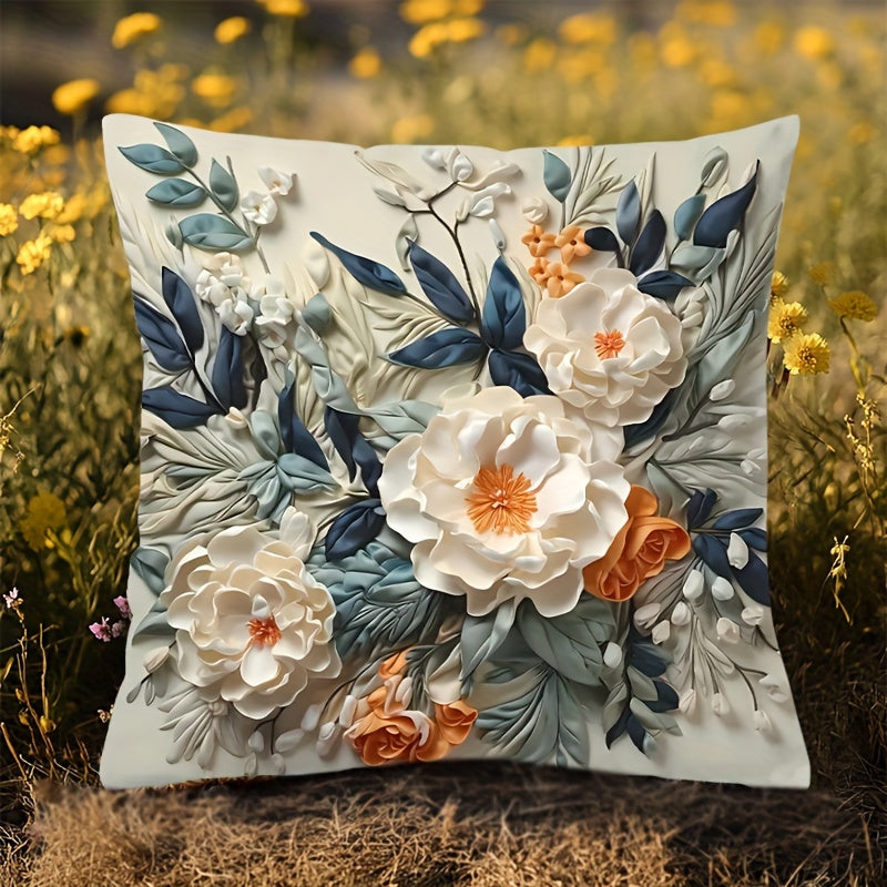 Обратимый 3D цветочный чехол для подушки с мягкой тканью с двусторонней печатью. Машинная стирка, с застежкой на молнии. Подходит для различных стилей интерьера. 44,96x44,96 см, подушка не включена.