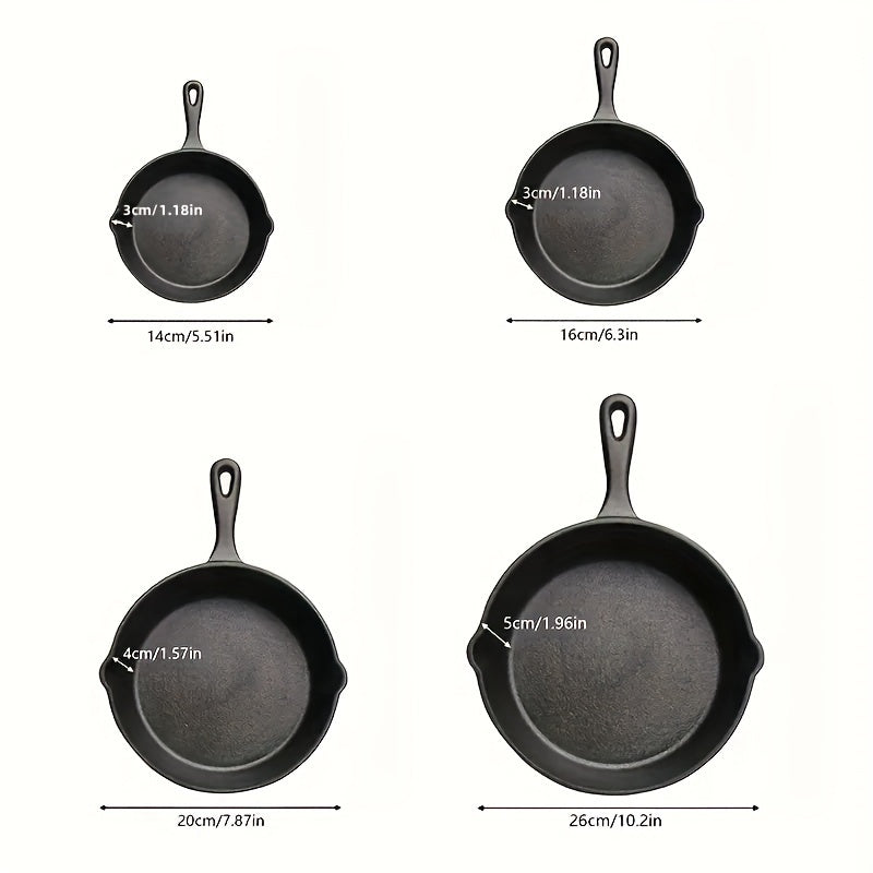Набор из четырех предварительно приправленных чугунных сковородок, идеально подходящих для жарки, тушения и выпечки. Отлично подходят для приготовления яблочных пирогов и кишей, эти универсальные сковороды являются необходимым элементом любой кухни.