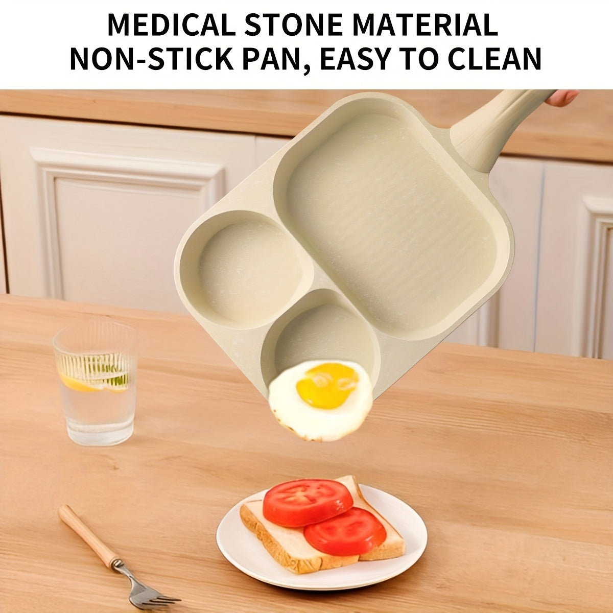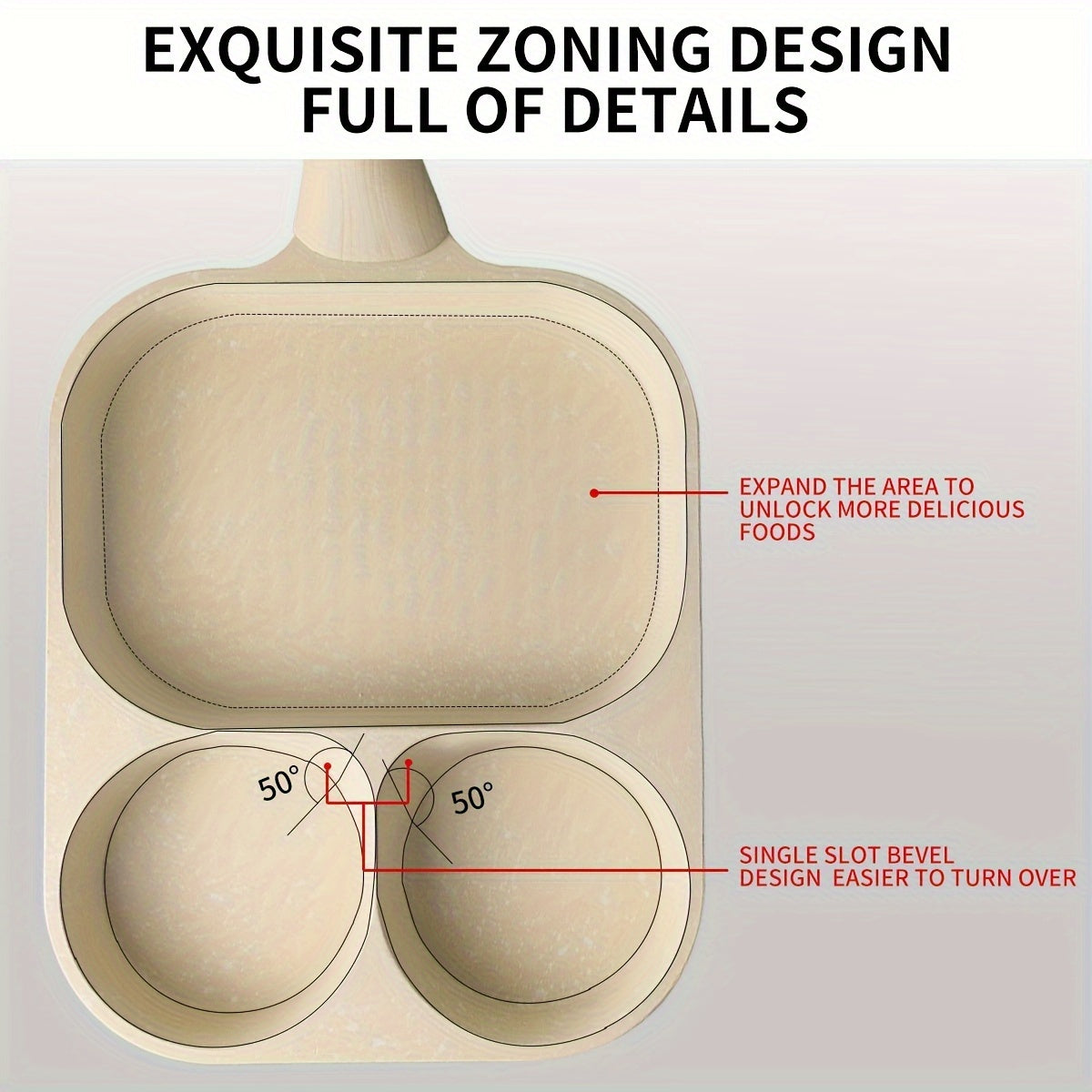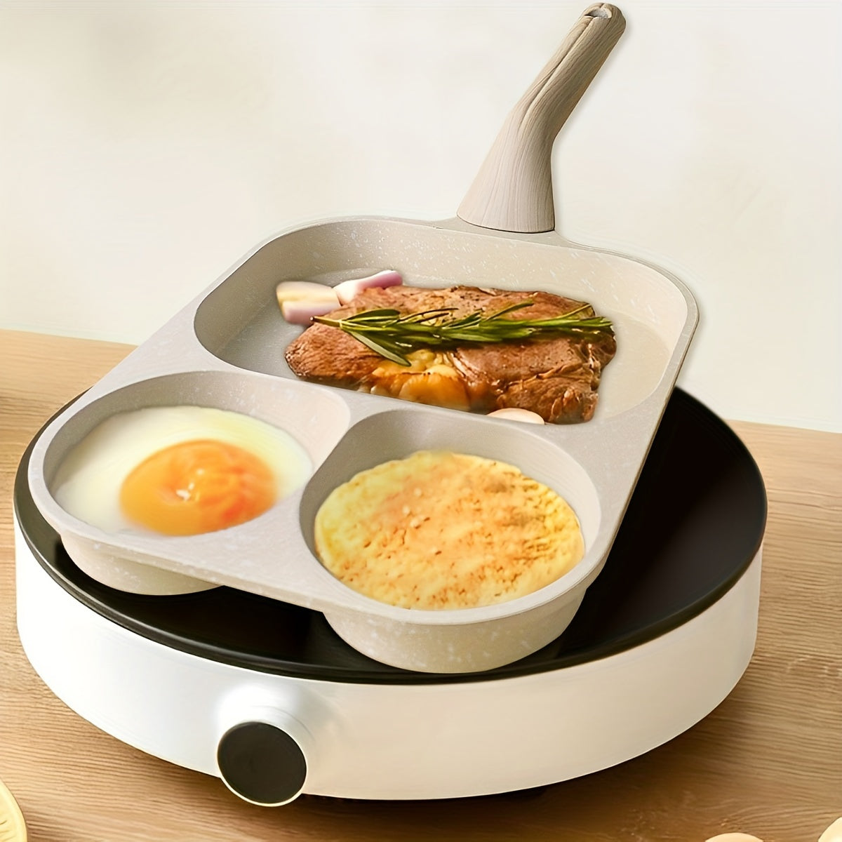 Универсальная 3-секционная антипригарная алюминиевая сковорода, идеально подходящая для приготовления завтрака, стейка и тостов. Эта сковорода совместима как с газовыми, так и с индукционными плитами, что делает её идеальной для осенних блюд.