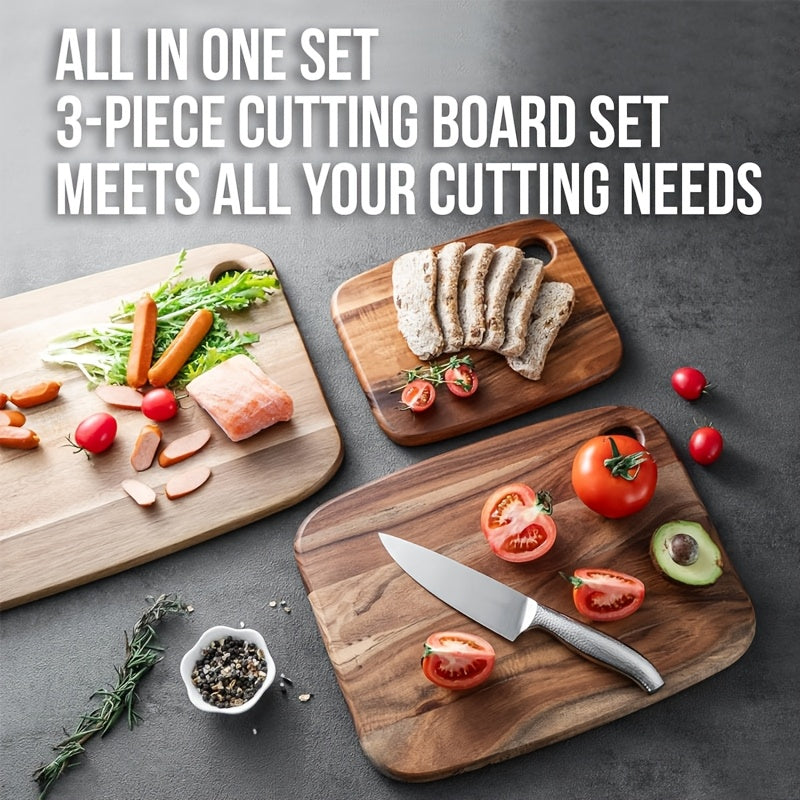 Набор разделочных досок из акациевой древесины, 3 предмета, большие, прочные кухонные доски для нарезки
