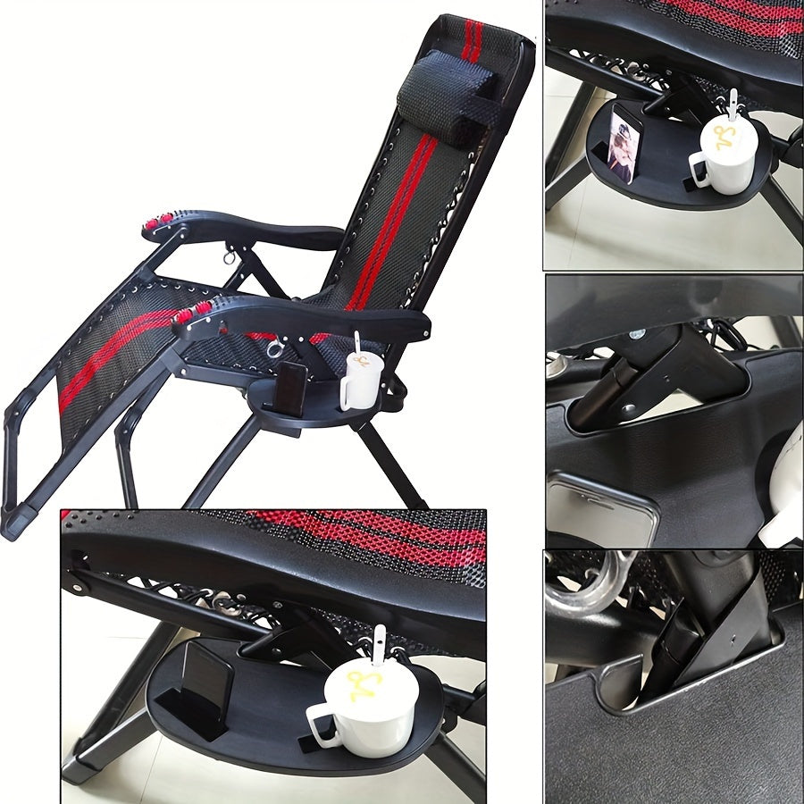 Подставка для аксессуаров с подстаканником и слотом для телефона, изготовлена из прочного пластика, предназначена для крепления к шезлонгам и пляжным креслам-реклайнерам - изящное черное кресло Zero Gravity, 1 шт.