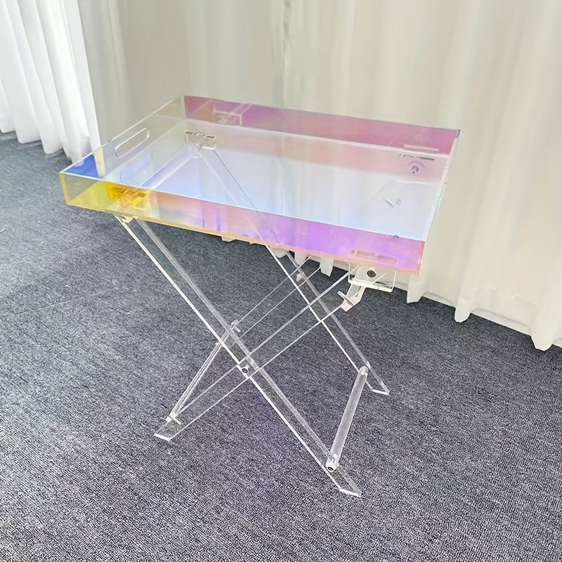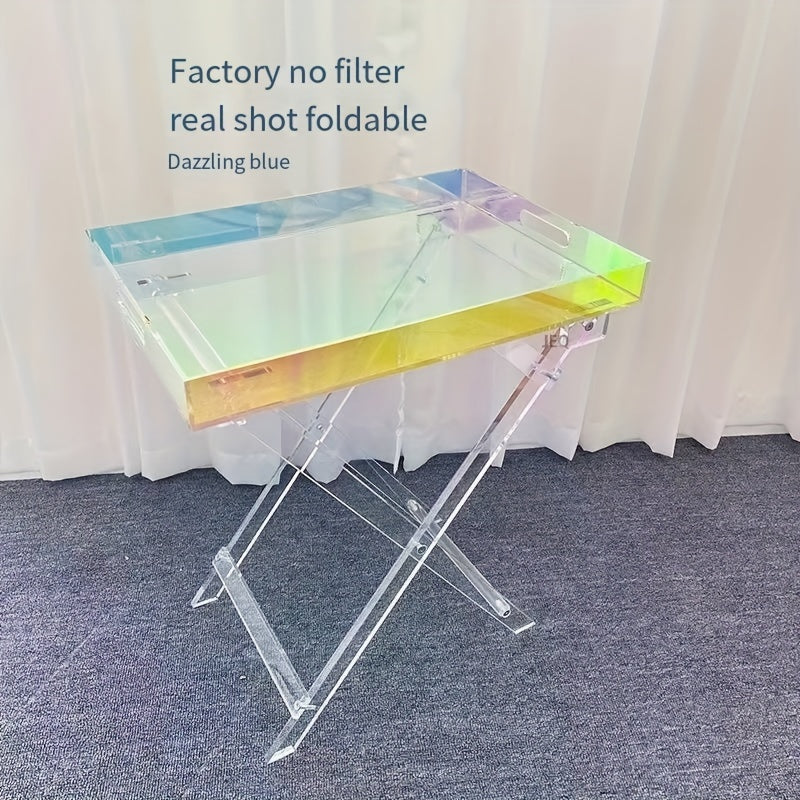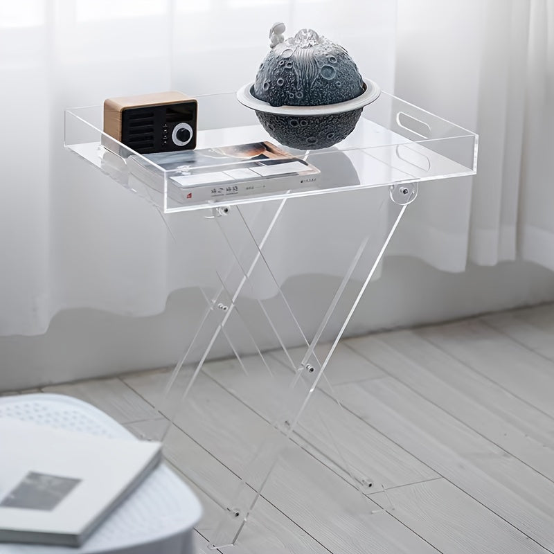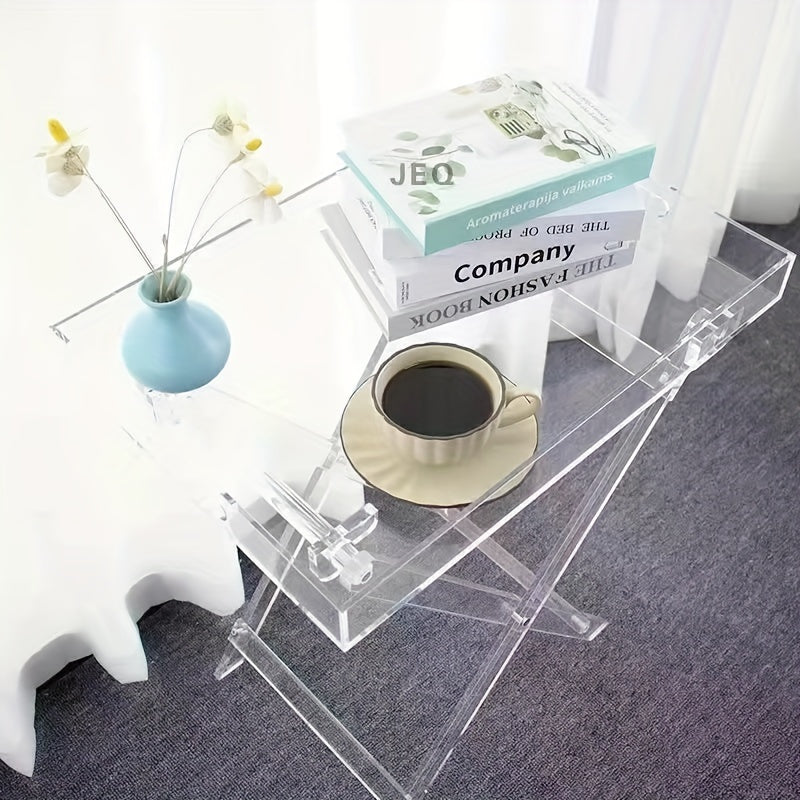 Акриловый прозрачный складной журнальный столик с подвижной полкой для хранения вещей - легкий, роскошный, прочный и портативный