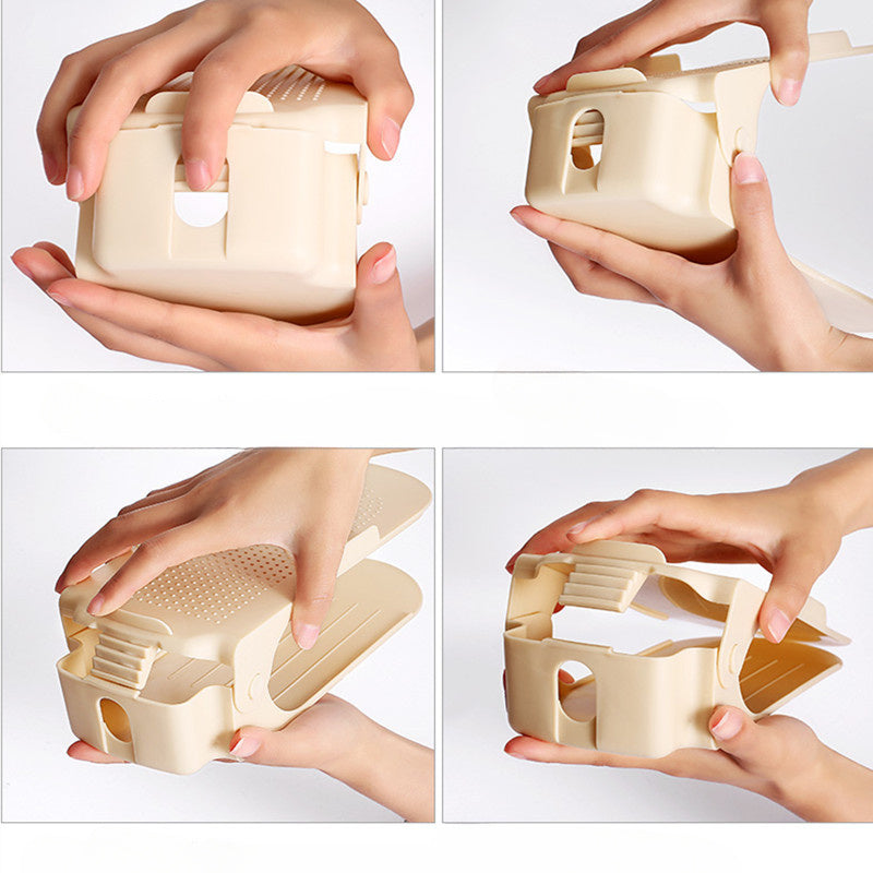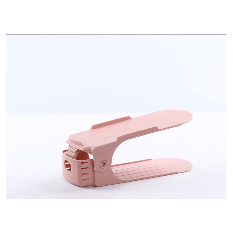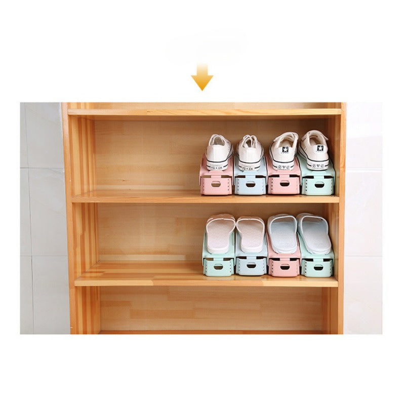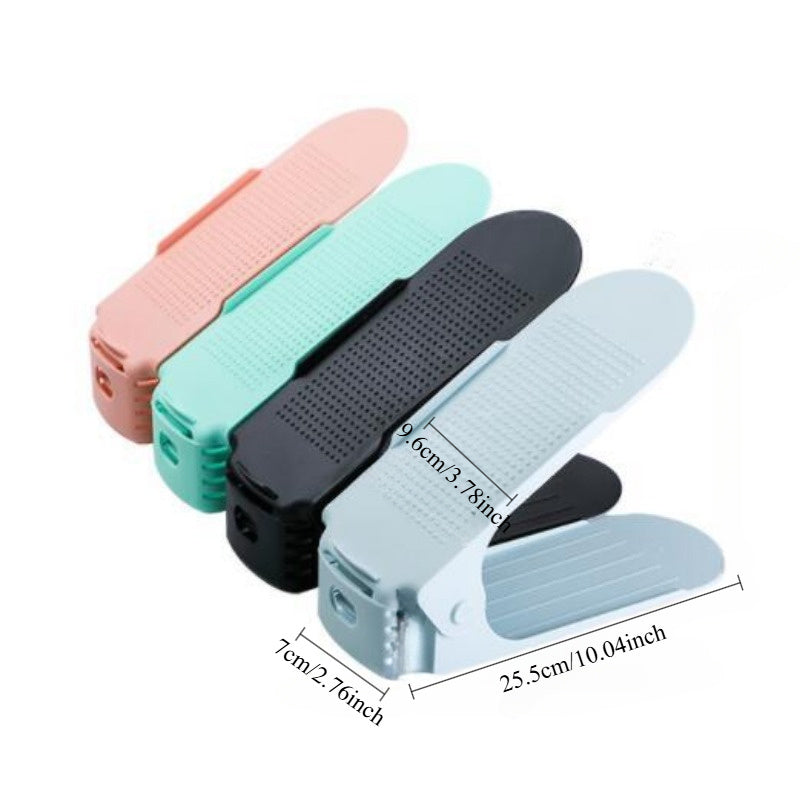 Регулируемая двухуровневая полка для обуви — эффективное решение для экономии места при хранении тапочек и обуви, идеально подходит для организации пространства дома и в общежитии.