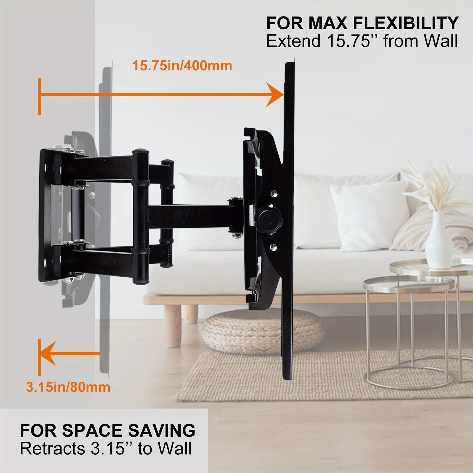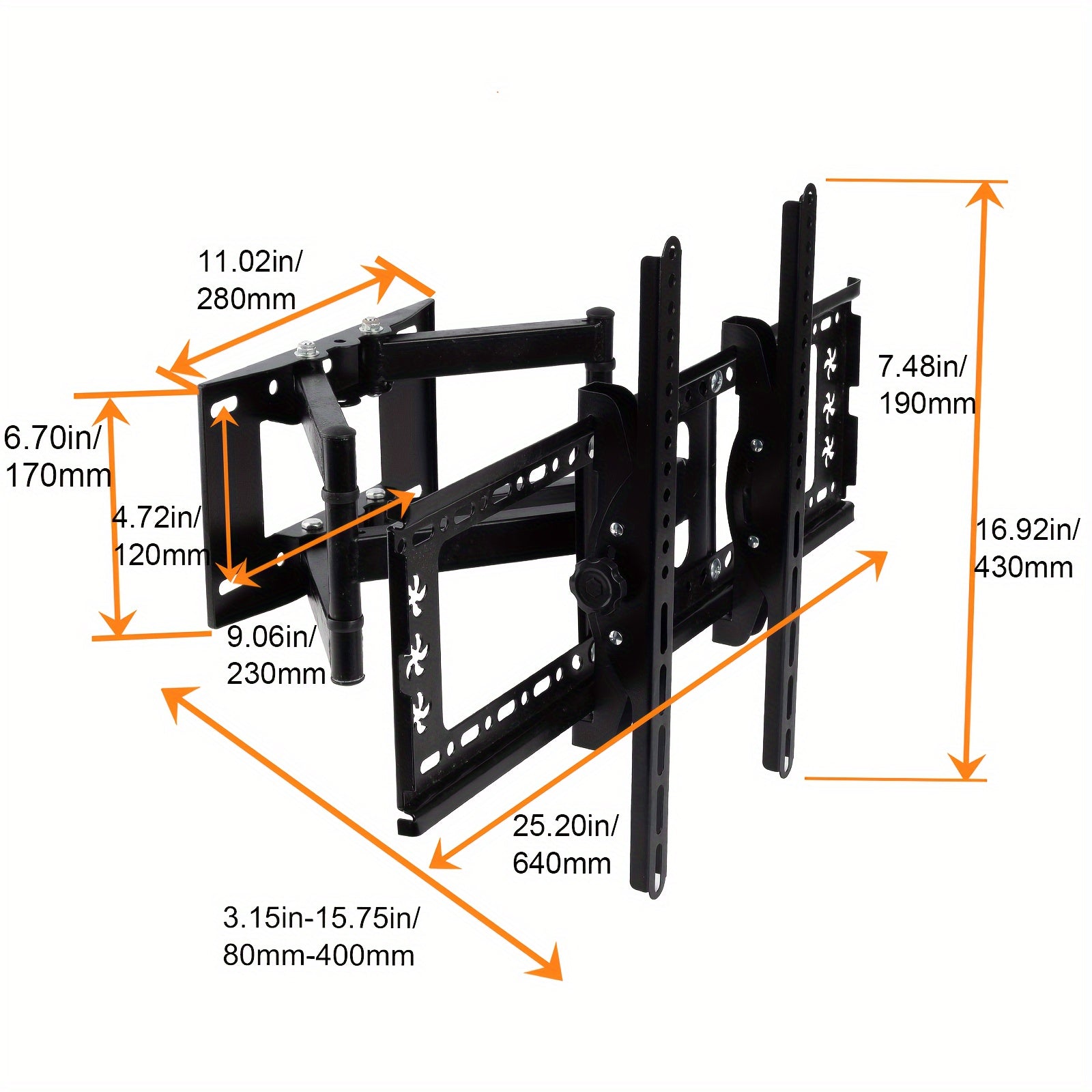 Регулируемый кронштейн для настенного крепления телевизора Full Motion — совместим с экранами 26–70 дюймов, поворачивается и наклоняется, поддерживает VESA 600x400 мм, грузоподъемность 49,9 кг