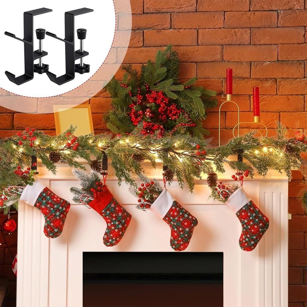 Регулируемые прочные металлические вешалки для гирлянд и носков - набор из 2 штук, держатели для каминной полки с двойными крючками для украшения Рождества, Нового года, Рамадана, выпускного сезона - сверло не требуется