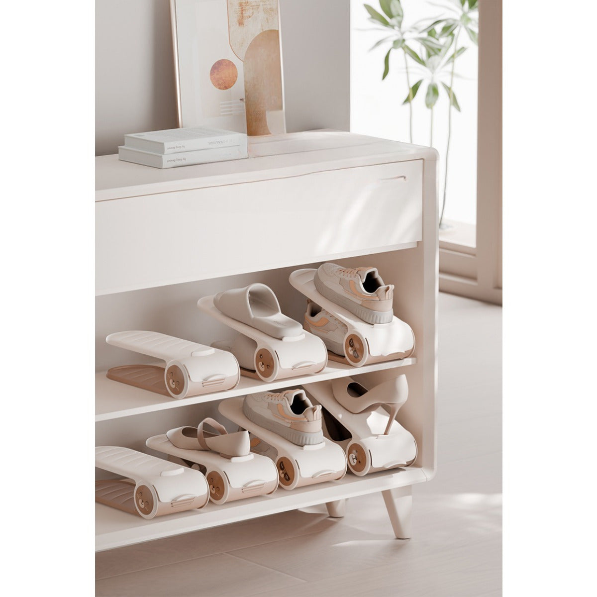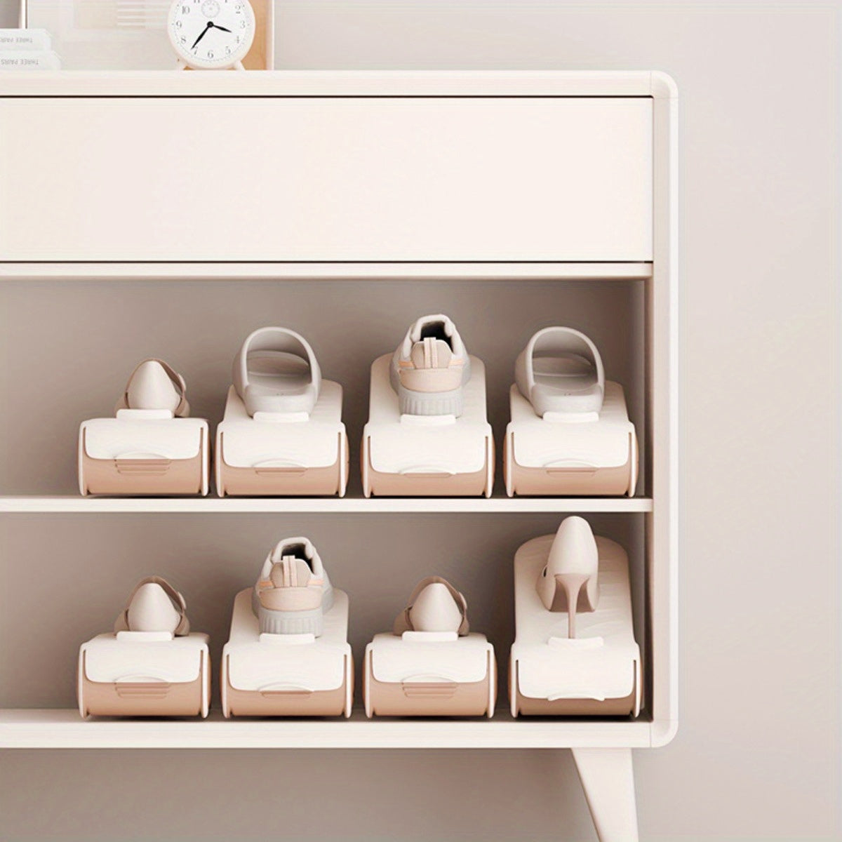 Регулируемая пластиковая полка для обуви - двухслойный органайзер для обуви для гостиной или общежития - неэлектрический напольный шкаф для хранения обуви
