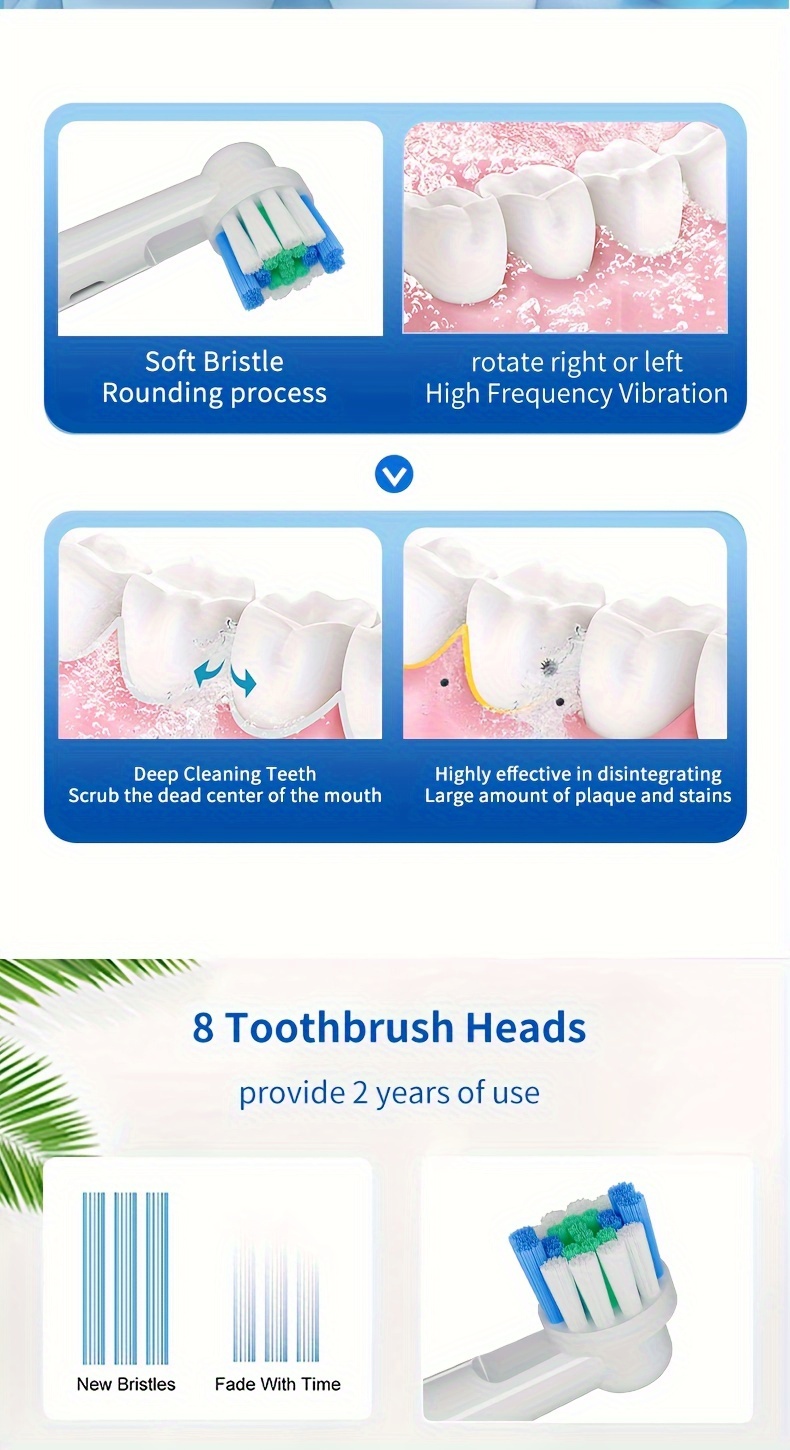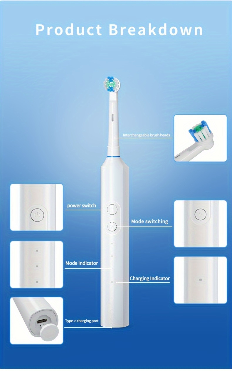 Взрослая вращающаяся электрическая зубная щетка с 2 насадками, дорожным чехлом и 3 режимами