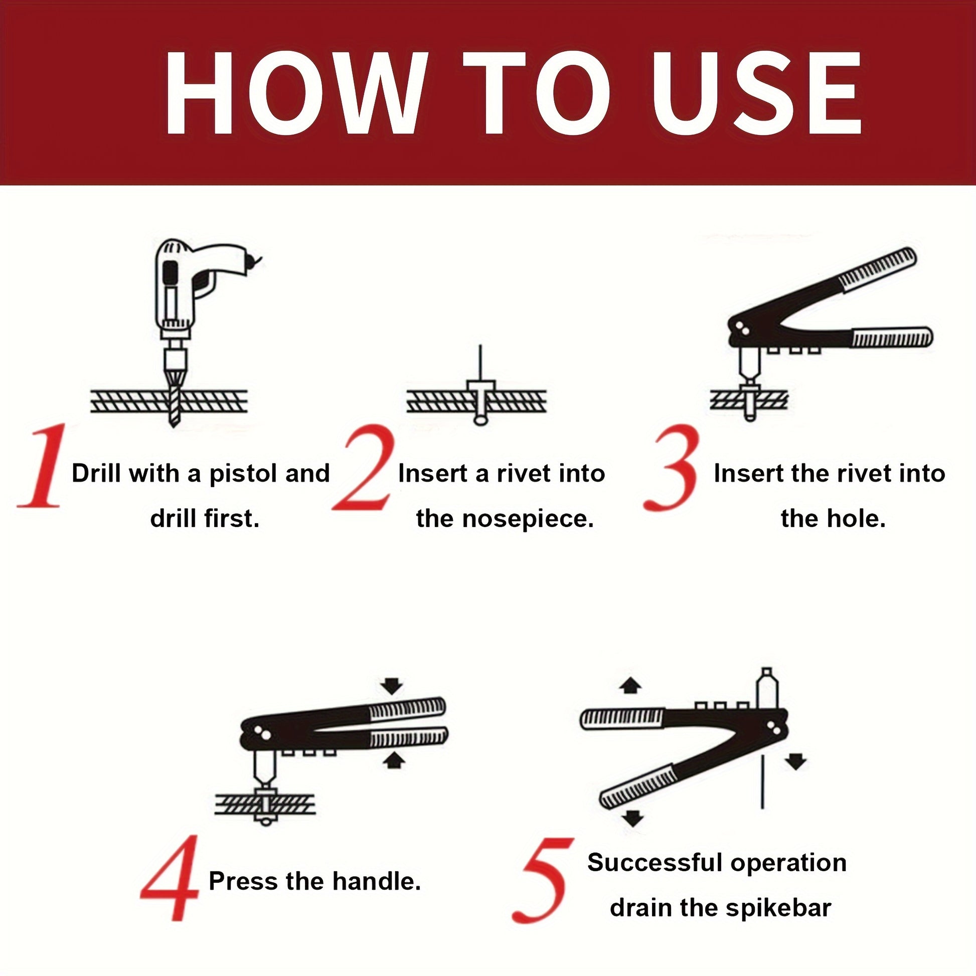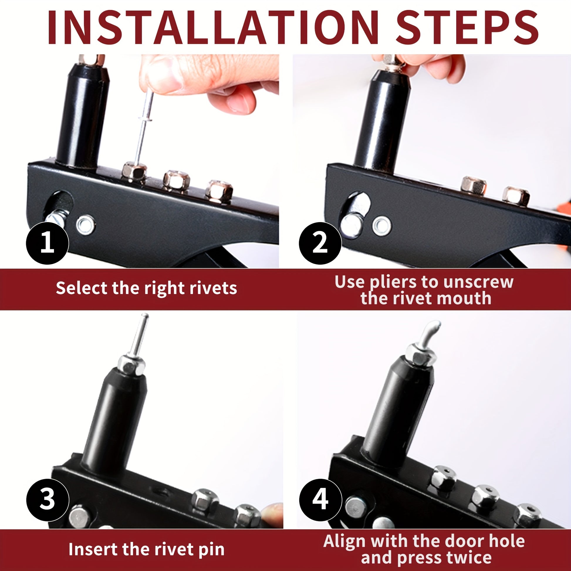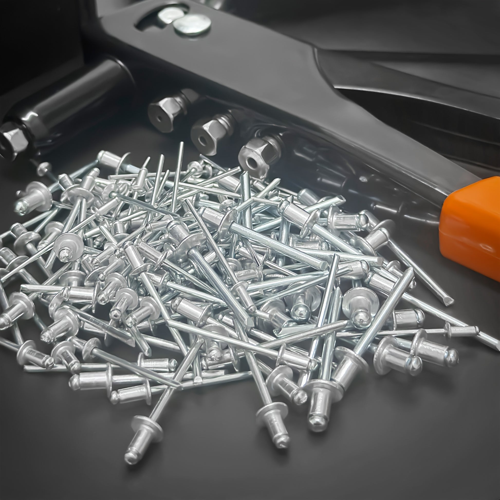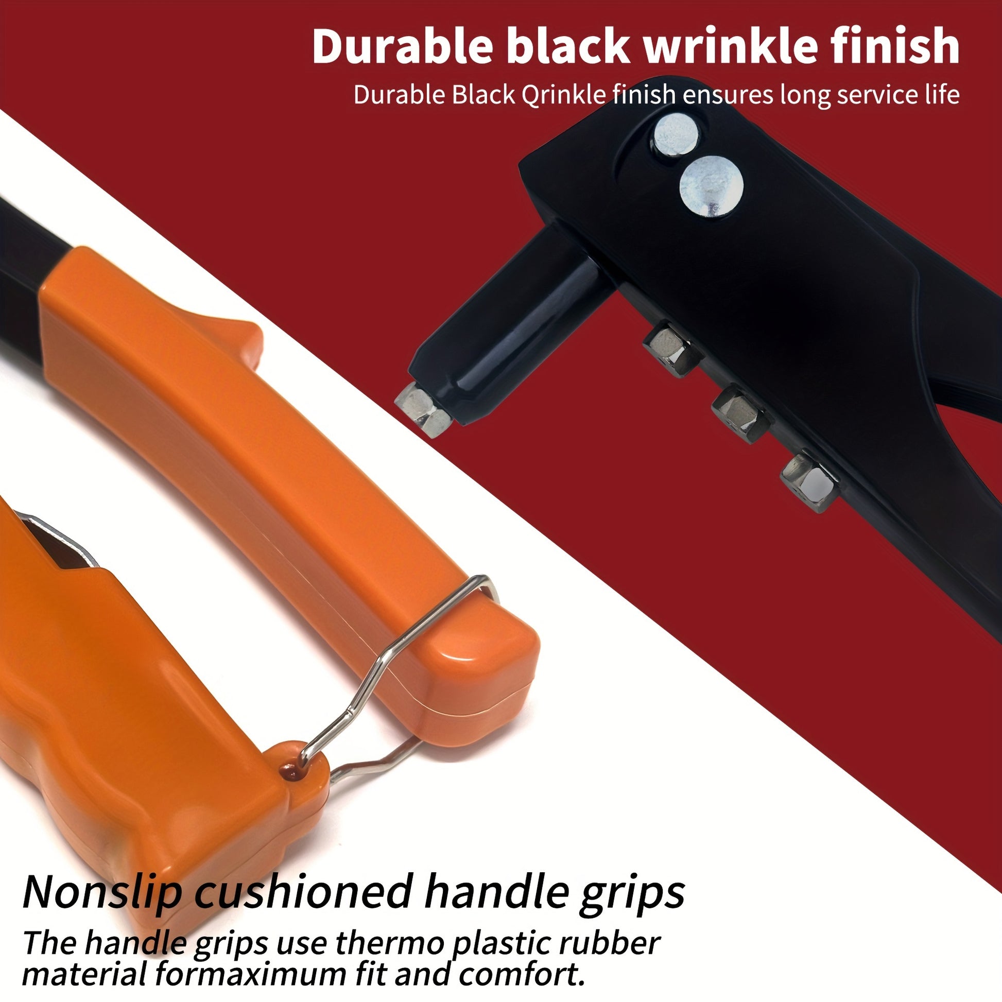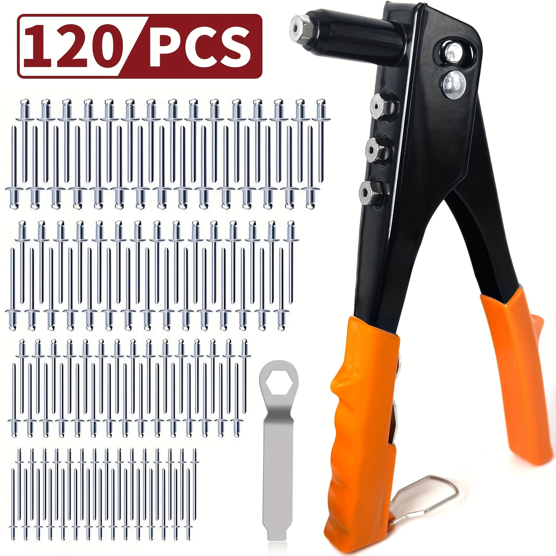 Тяжелый ручной заклепочник с 4 насадками и 120 заклепками для металла, пластика, кожи