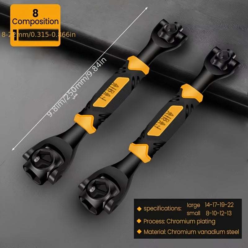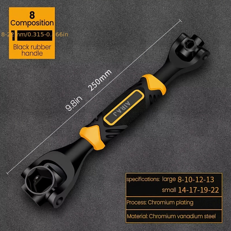 Набор многофункциональных ключей 8-в-1 из хром-ванадиевой стали, нескользящая резиновая рукоятка, прочные легкие ручные инструменты