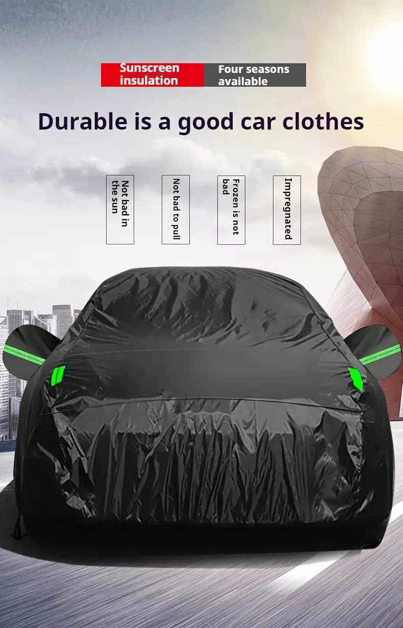 Все черные чехлы для автомобилей из полиэстера с защитой от солнца, отражающая полоса 190T