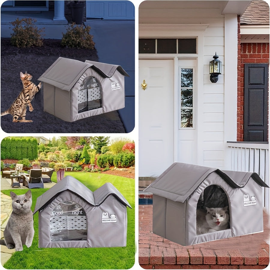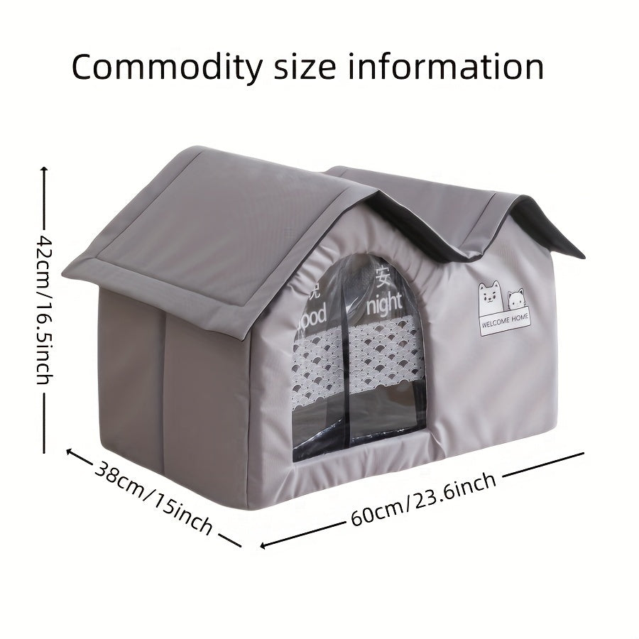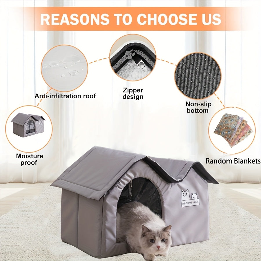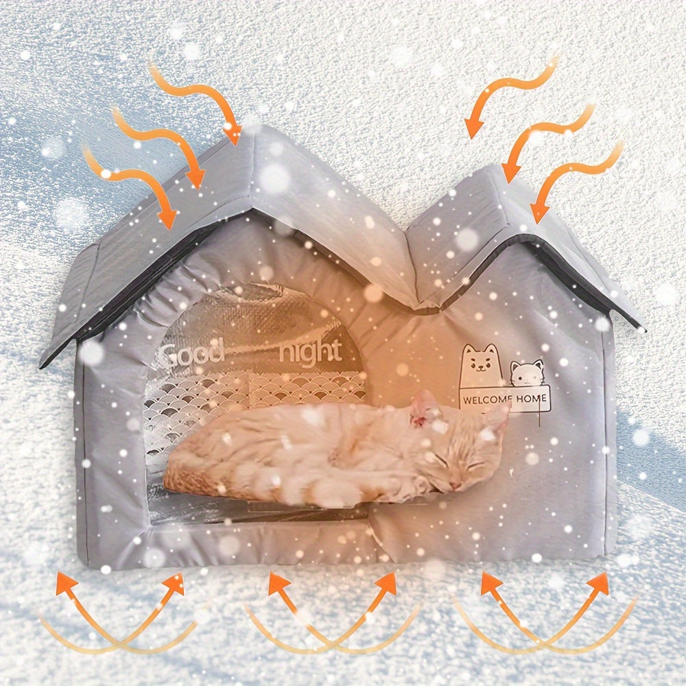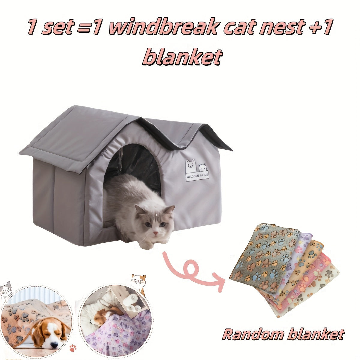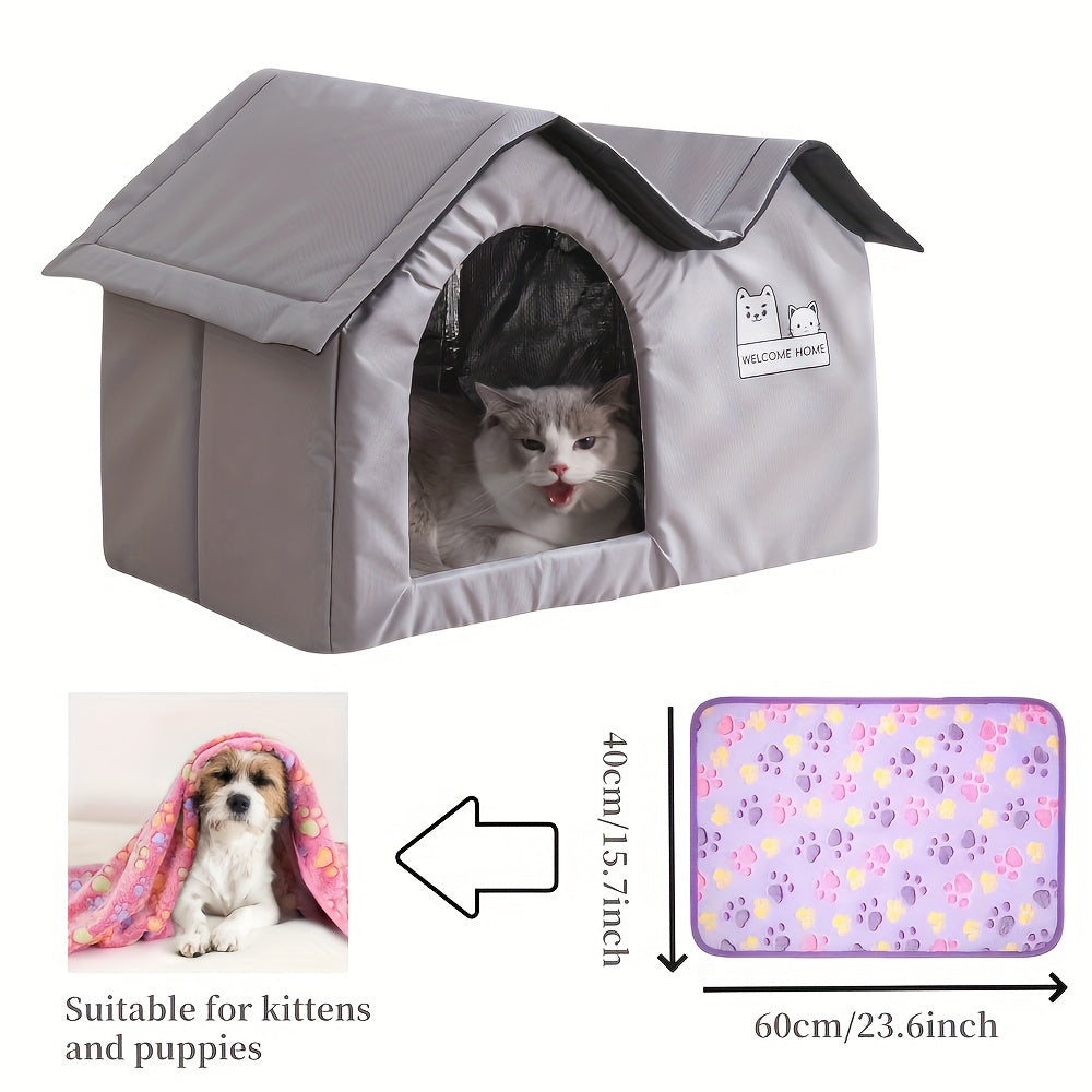 Кошачий дом для любой погоды с съемным ковриком и одеялом с отпечатком лапы для использования внутри и снаружи