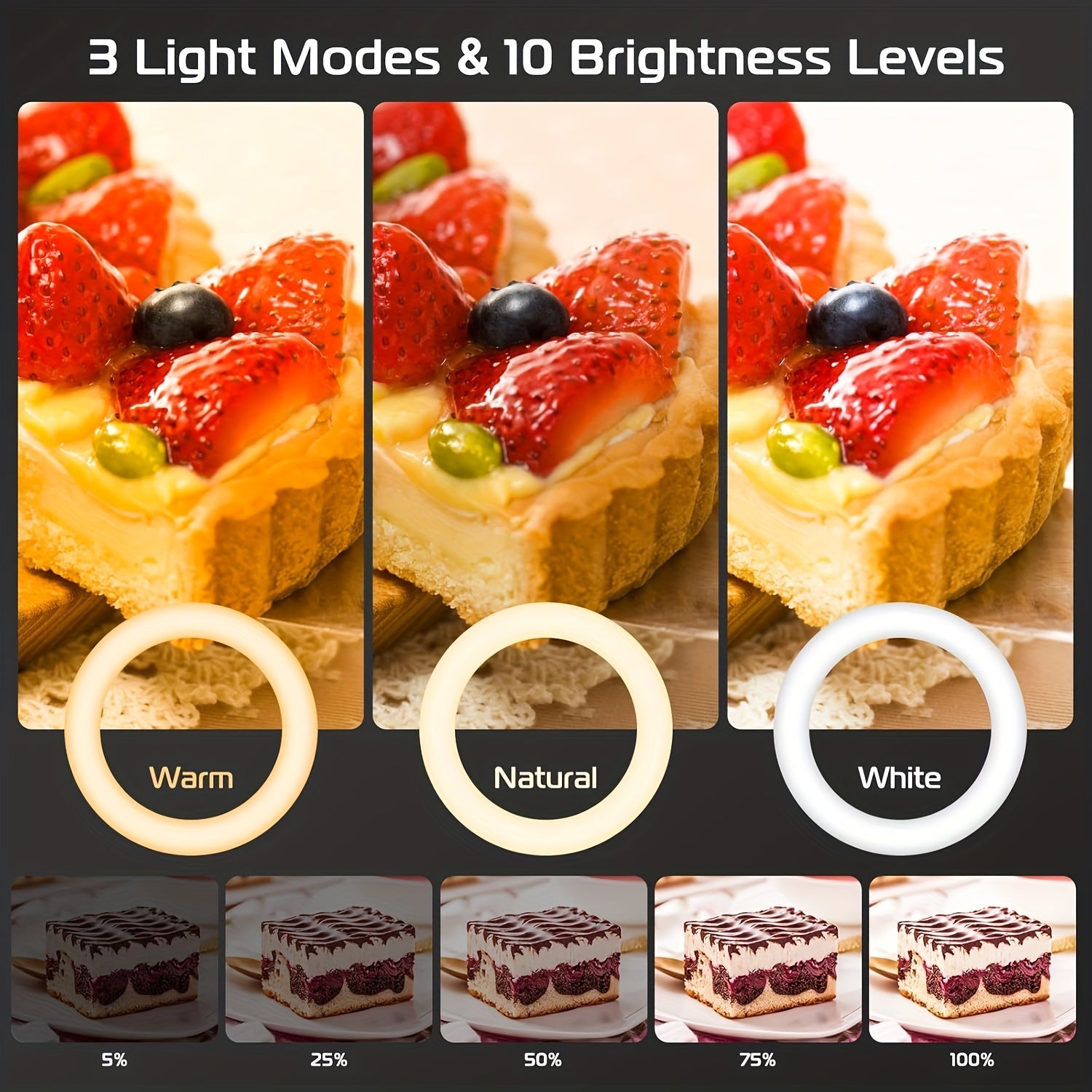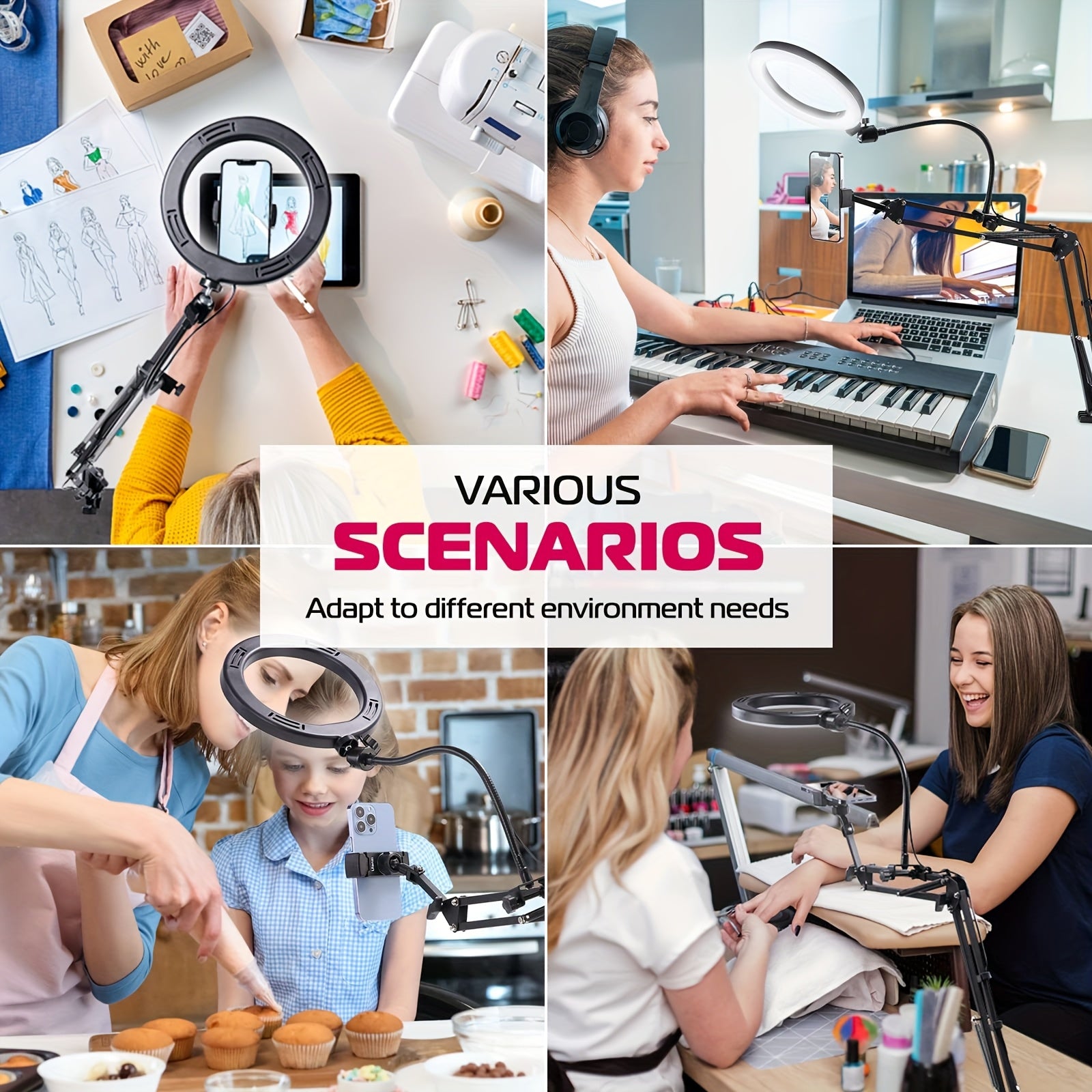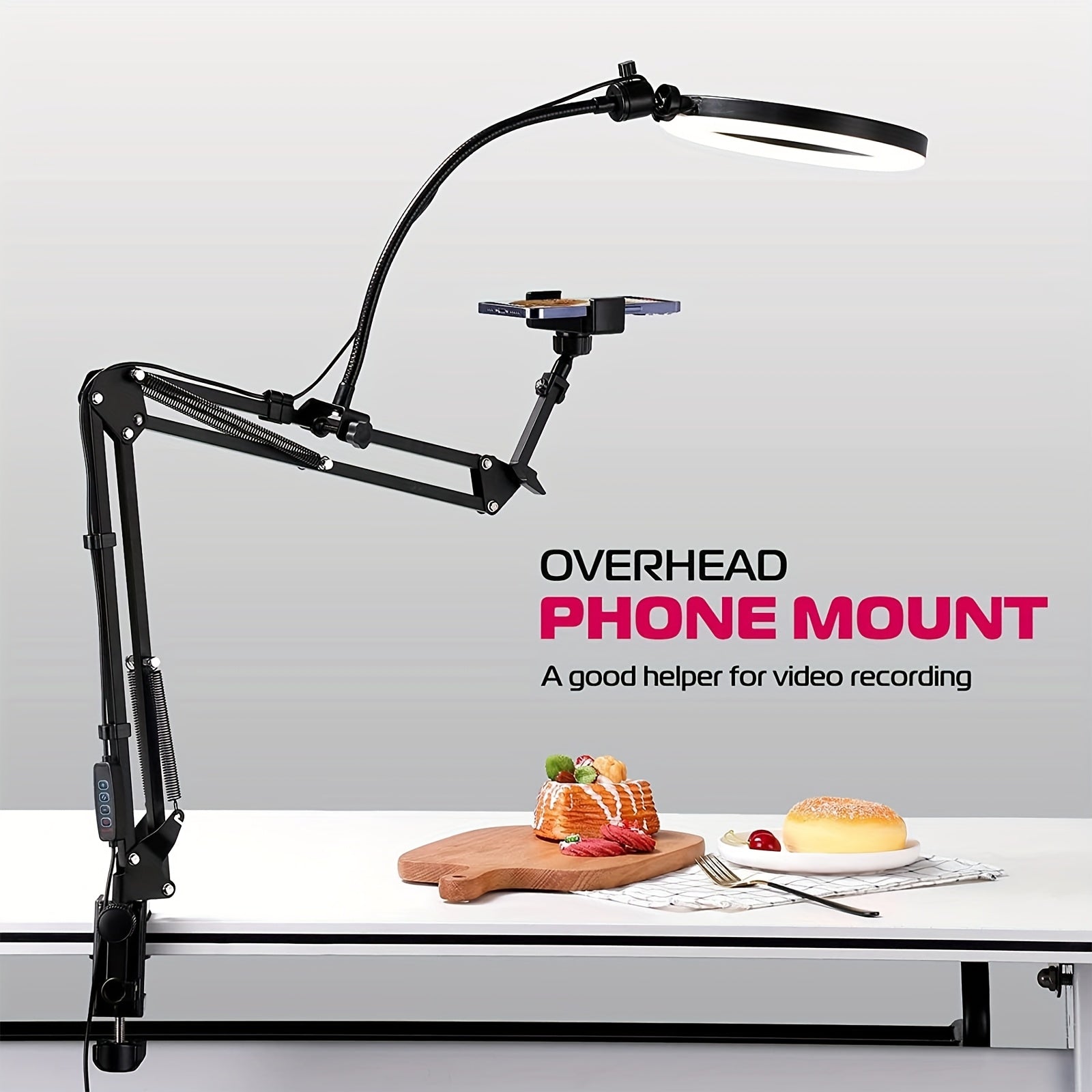 Алюминиовая подставка для телефона с кольцевым светом, крепление сверху для прямых эфиров, кулинарии, рисования, маникюра, черный