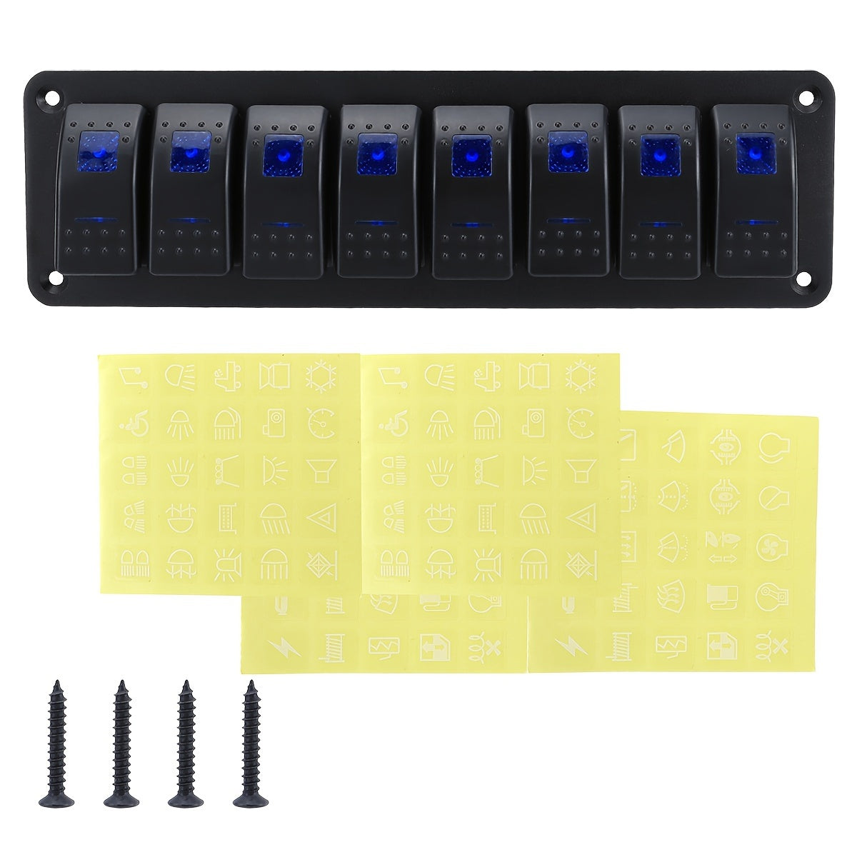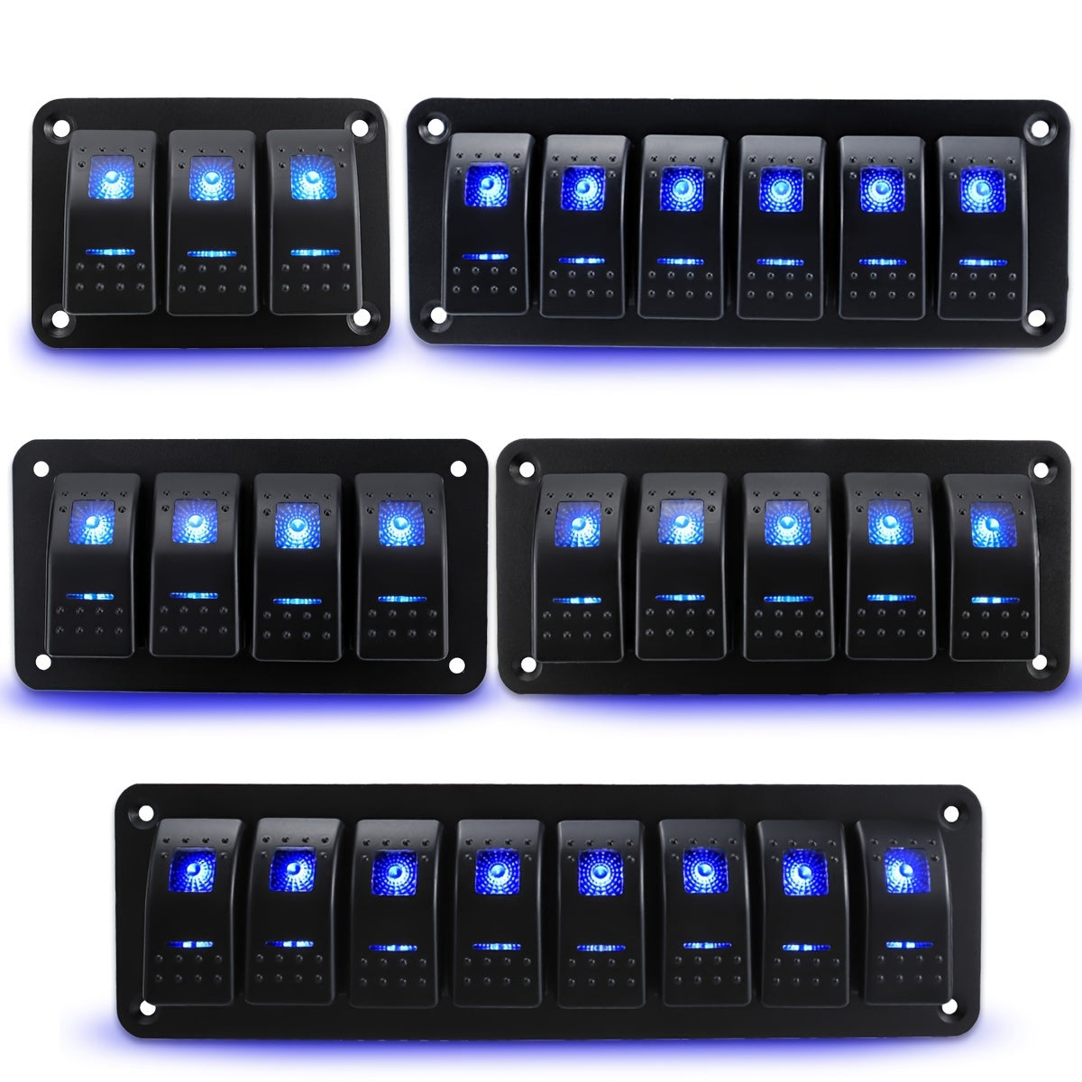 Алюминиевый панель переключателей Rocker 3-8 групп 5-контактный Вкл/Выкл синий для транспортных средств