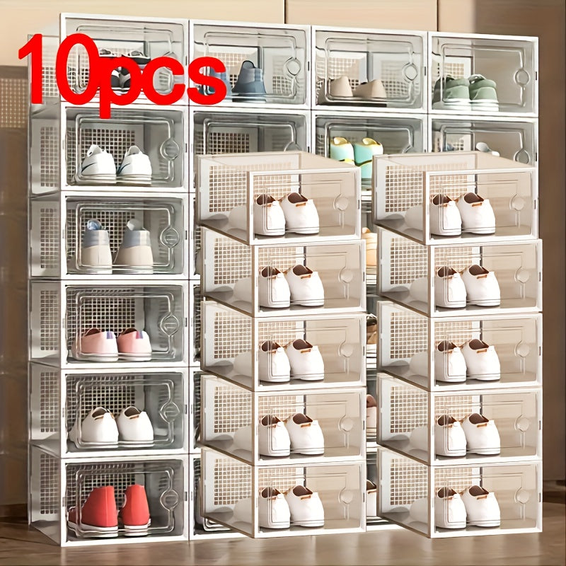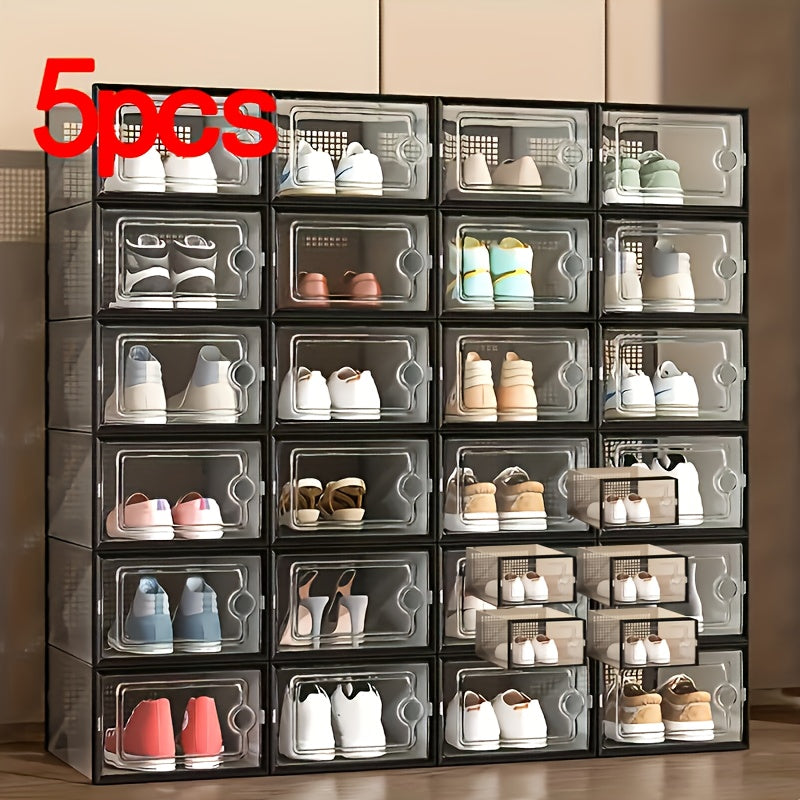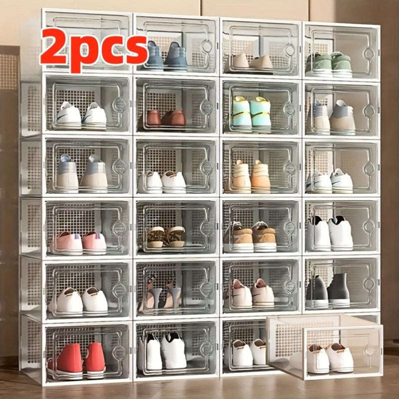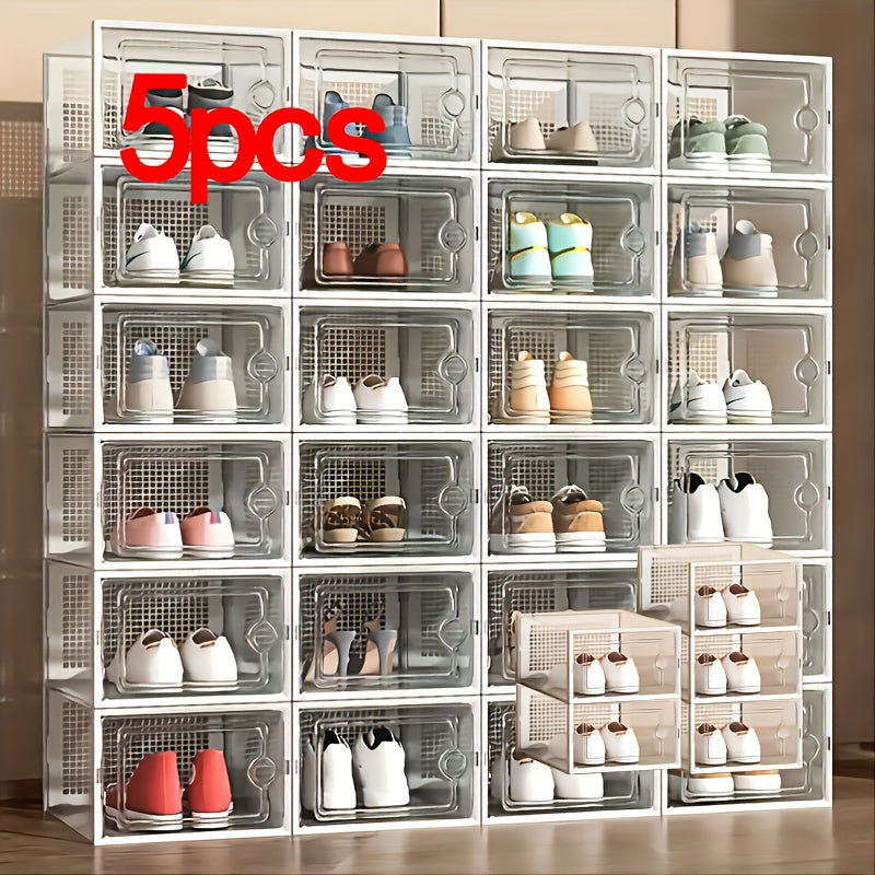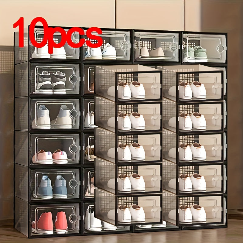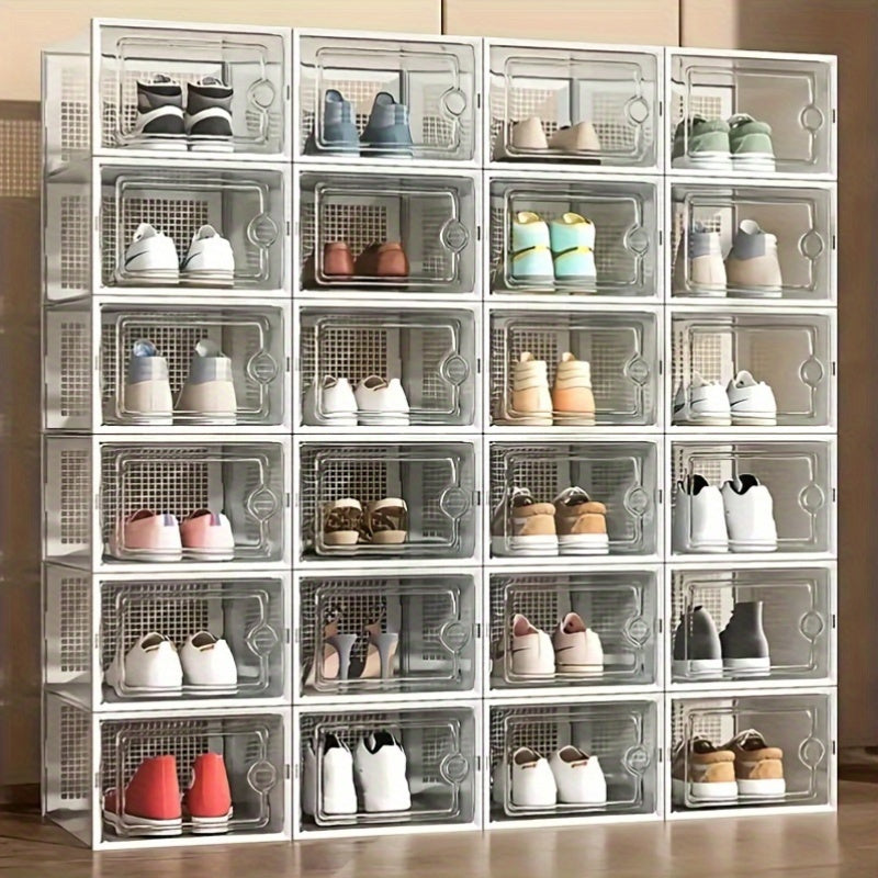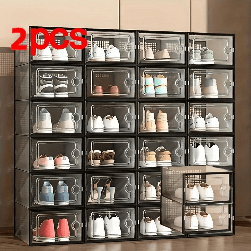 Прозрачные пластиковые контейнеры для хранения обуви, штабелируемые, многоуровневые органайзеры для обуви