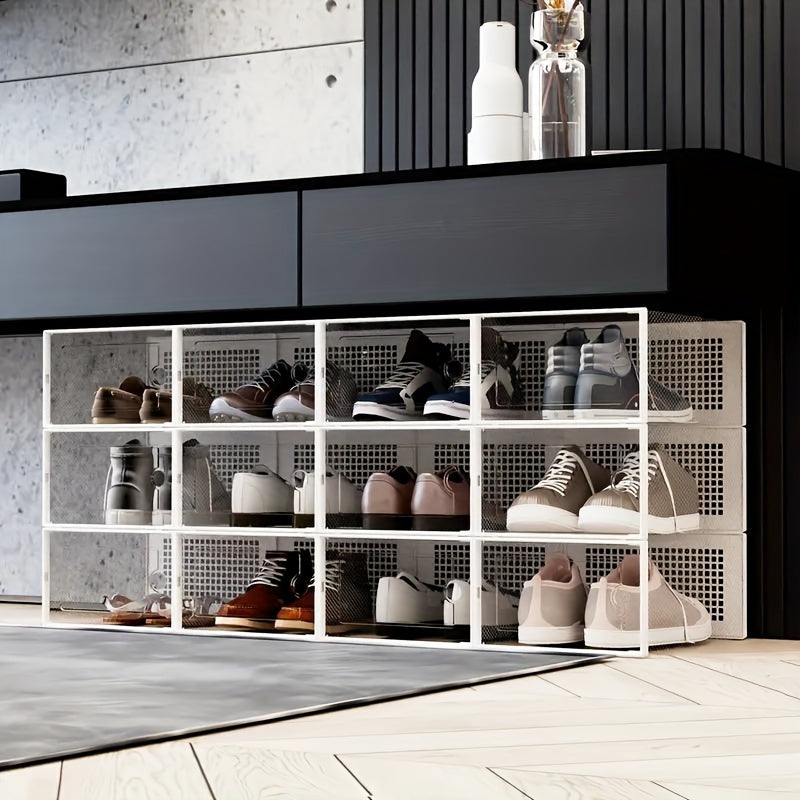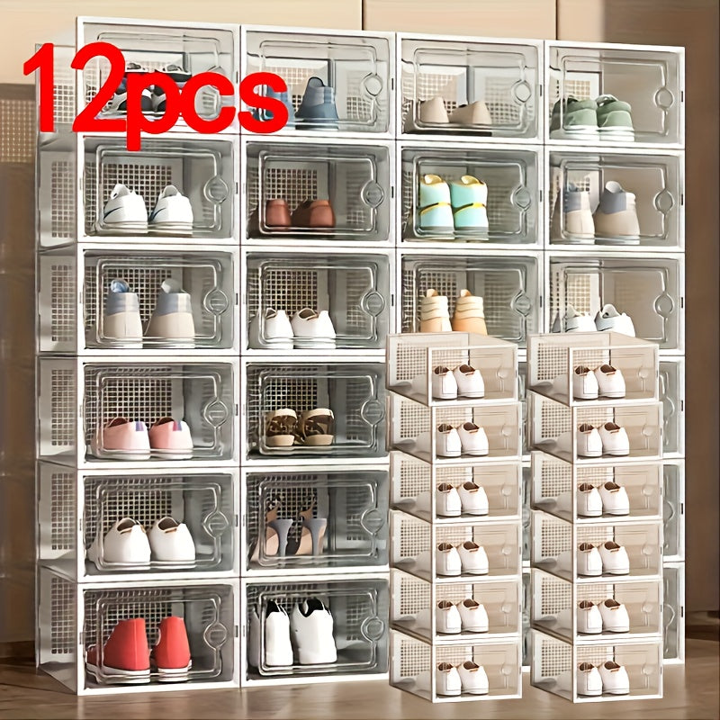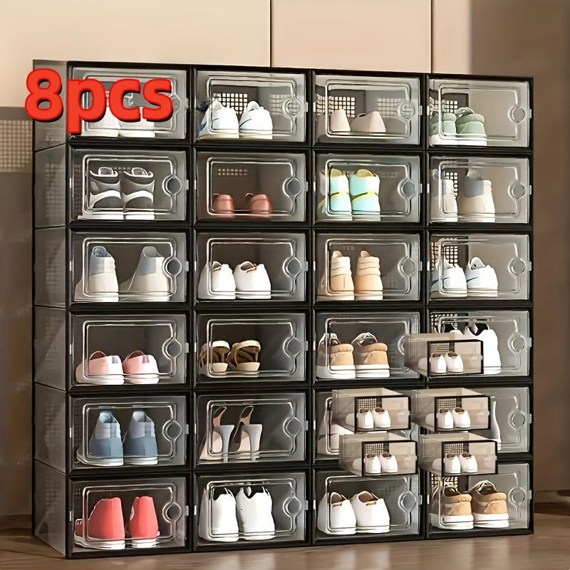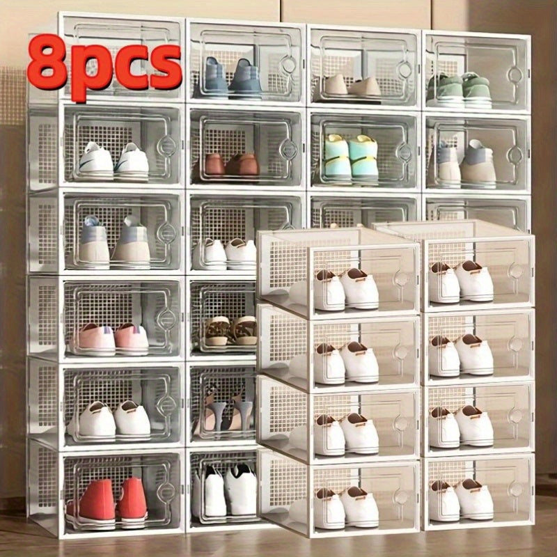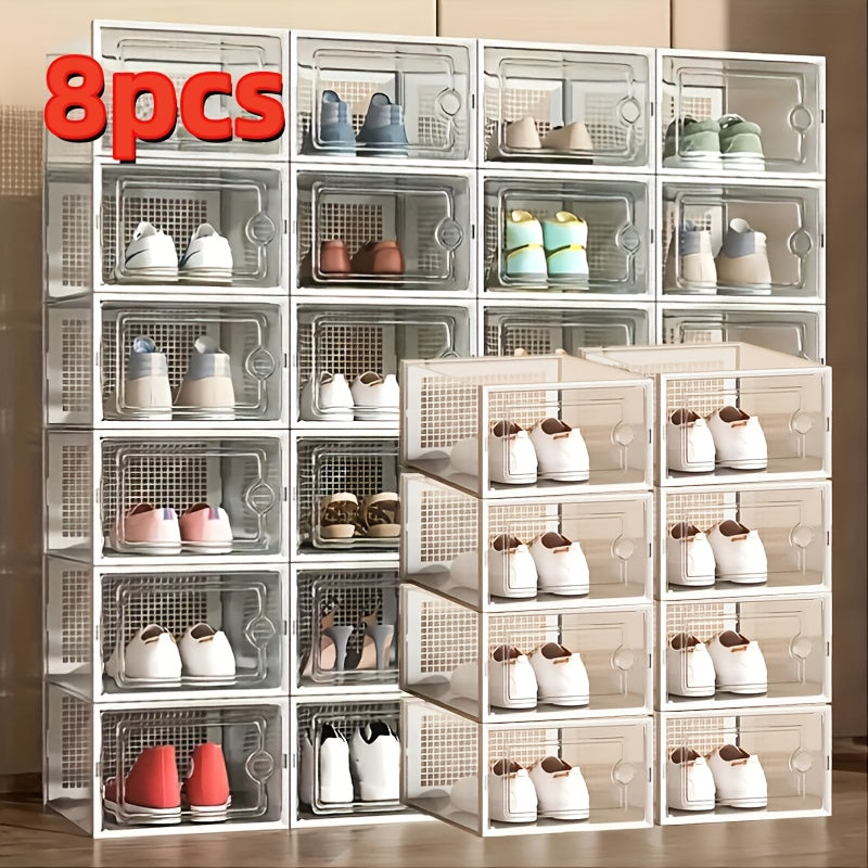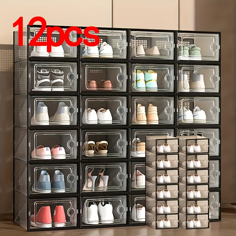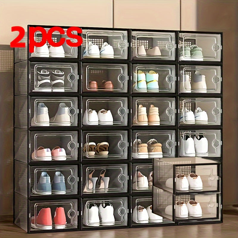 Прозрачные пластиковые контейнеры для хранения обуви, штабелируемые, многоуровневые органайзеры для обуви