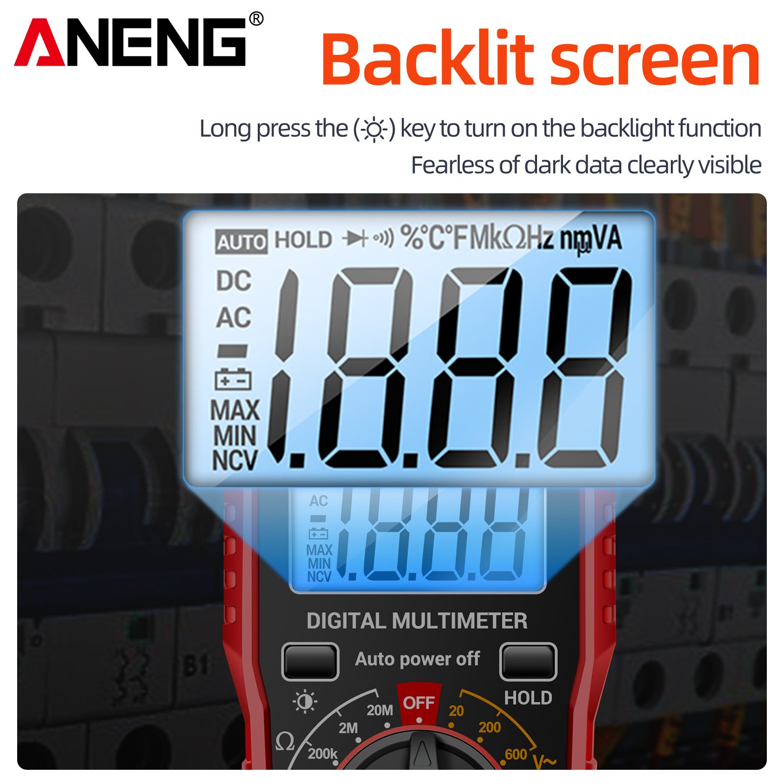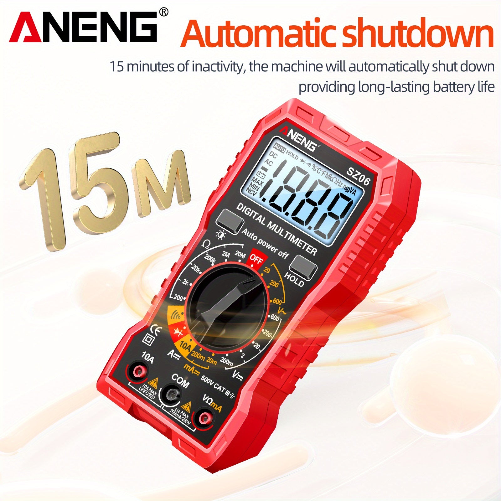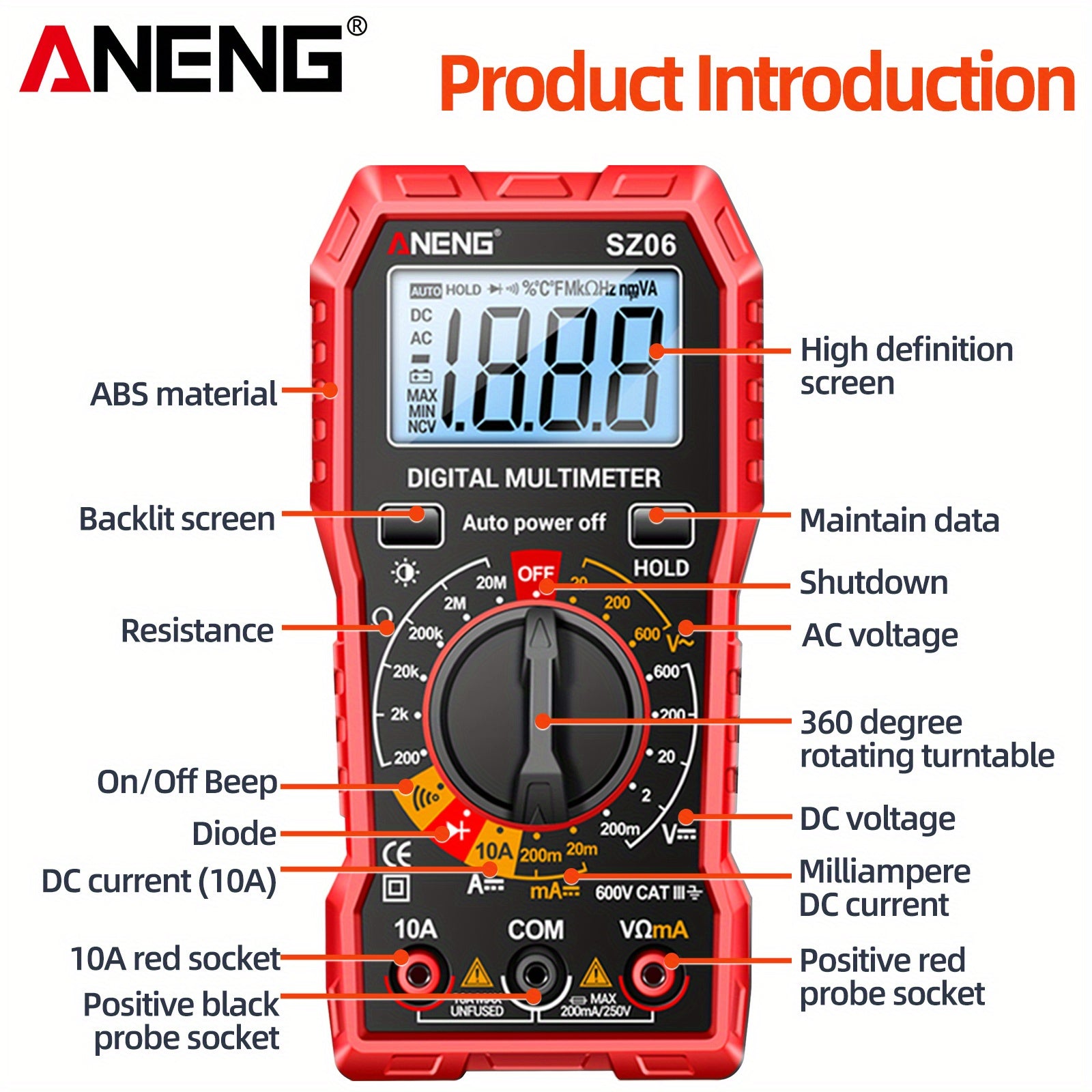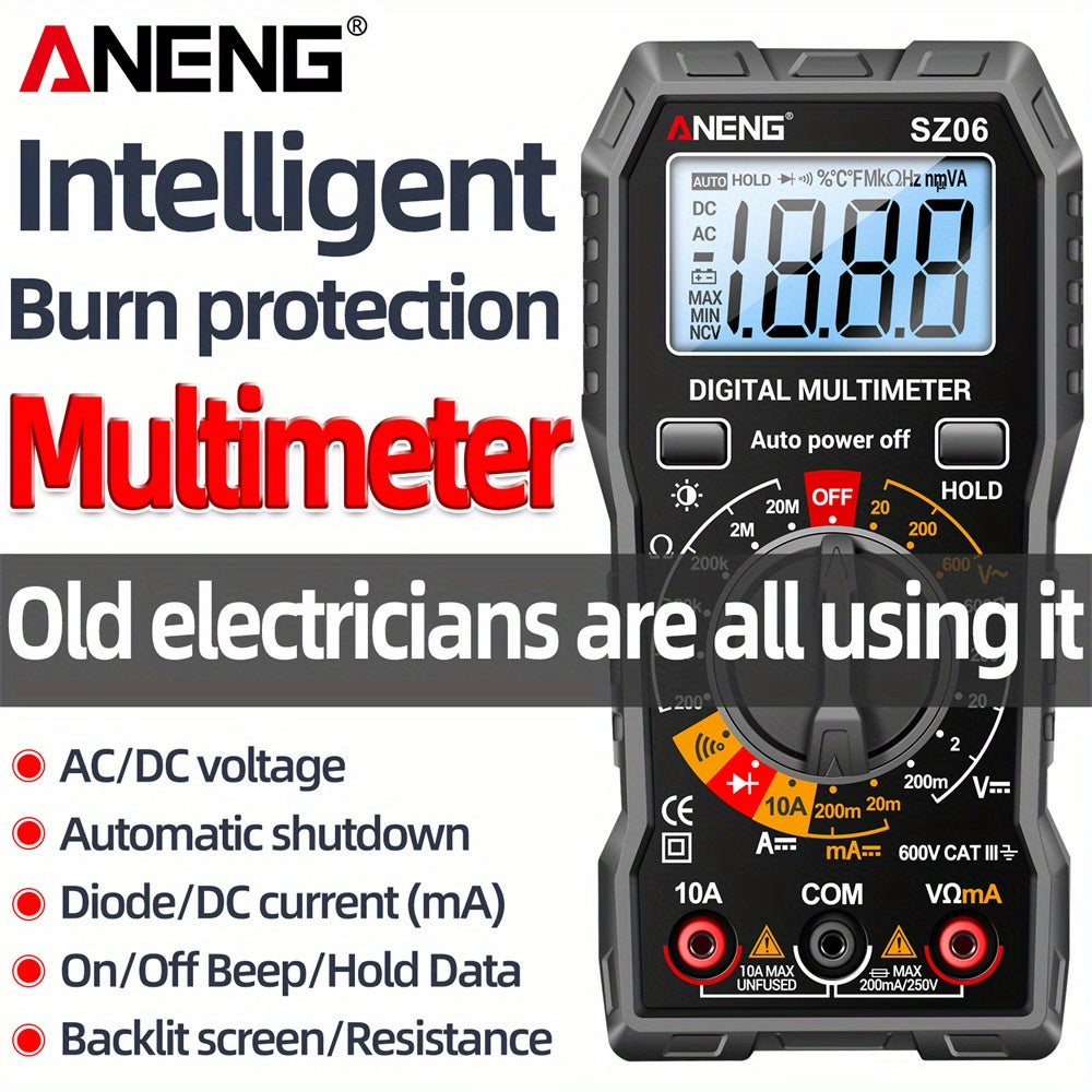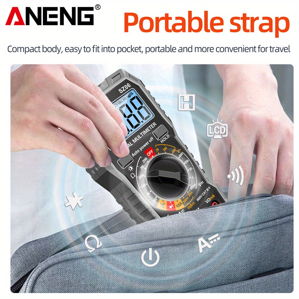 Цифровой мультиметр ANENG SZ06 на 2000 отсчетов с возможностями измерения переменного/постоянного напряжения, постоянного тока и сопротивления.