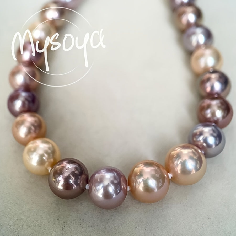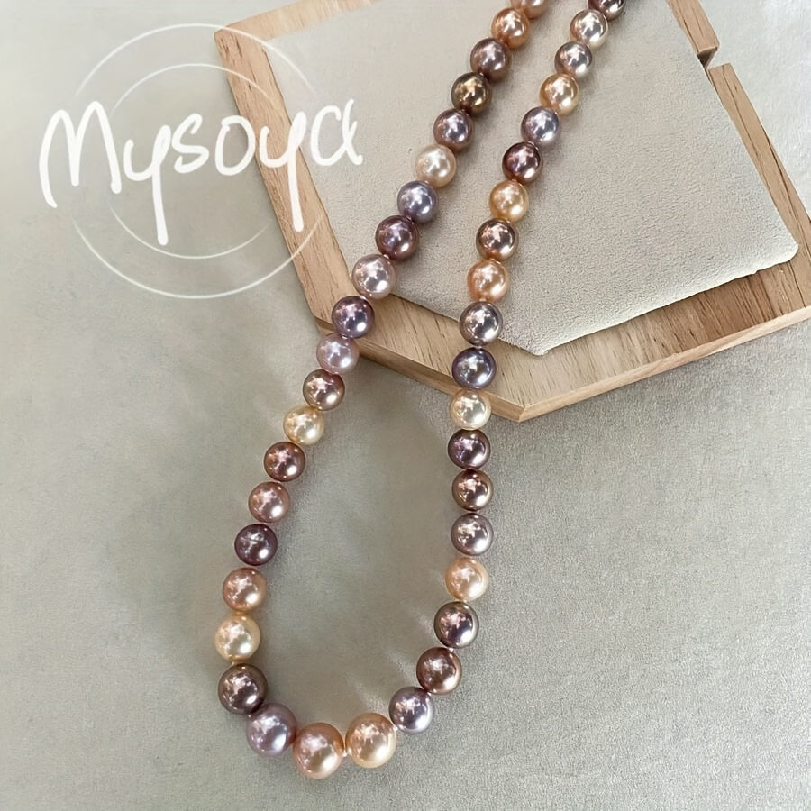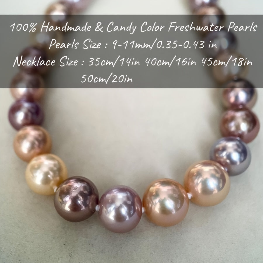 Колье ручной работы с яркими конфетными цветами и пресноводными жемчужинами размером 9-11 мм, представленное в подарочной коробке. Идеально подходит как для повседневной носки, так и для особых случаев.