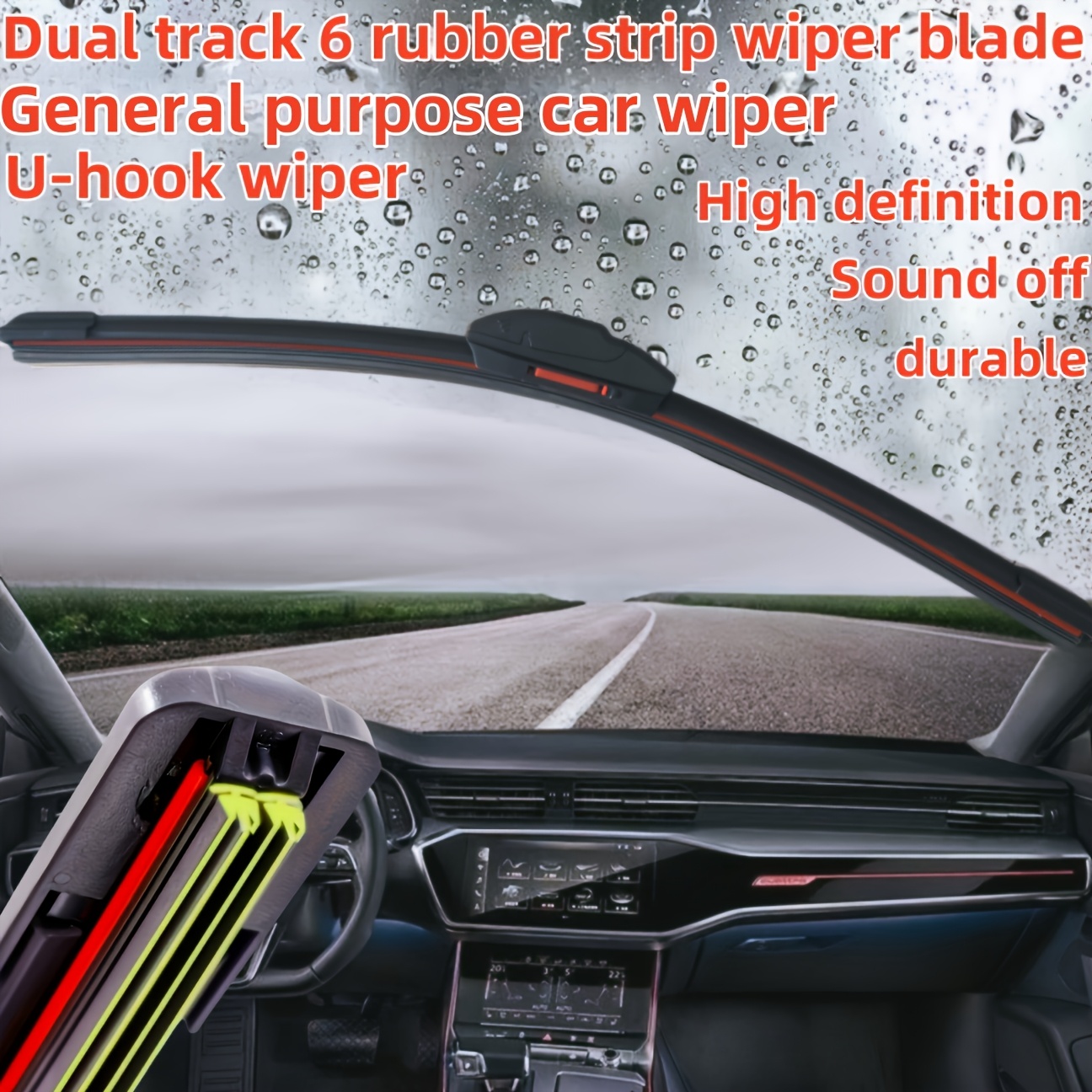 Автомобильная двухполосная щетка-скребок U-образной формы из прочной резины, тихая