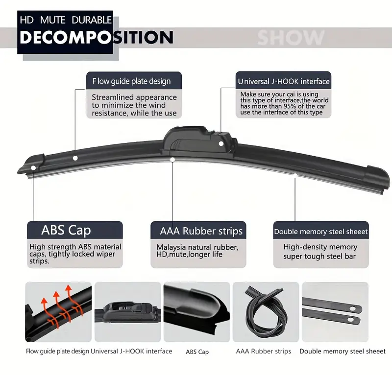 Автомобильная бескаркасная щетка стеклоочистителя типа U J для всех моделей автомобилей, тихая, долговечная