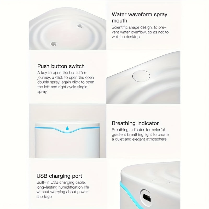 Увлажнитель звуковых волн большой емкости 2000 мл, портативный, с USB-питанием, для осени и зимы